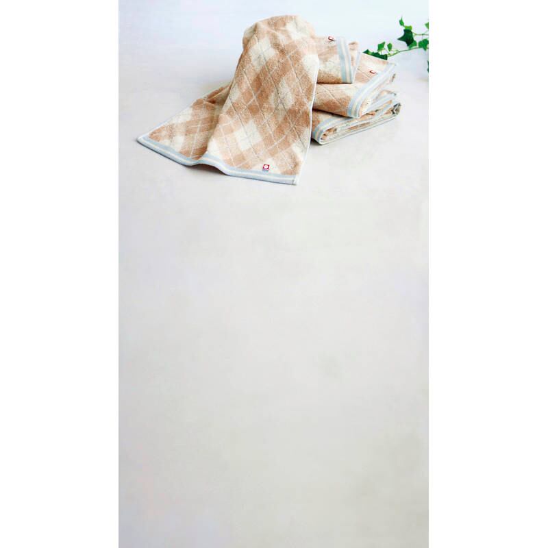 ブラウンのアーガイルチェックに水色の差し色がおしゃれな今治製のタオルです。細かなおしゃれさが光る甘い雰囲気のタオルです。