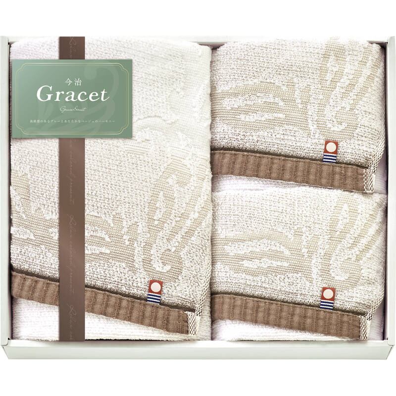 高級感のあるグレーとあたたかみのあるベージュを混ぜ合わせた、グレージュカラーのタオルセット。甘撚りの糸で織り上げ、ふんわりとした肌触りです。今治のジャガード織で、ゆったりとしたオーナメント柄を繊細な曲線美で表現。優しいグラデーションにも、糸染めの業が光ります。