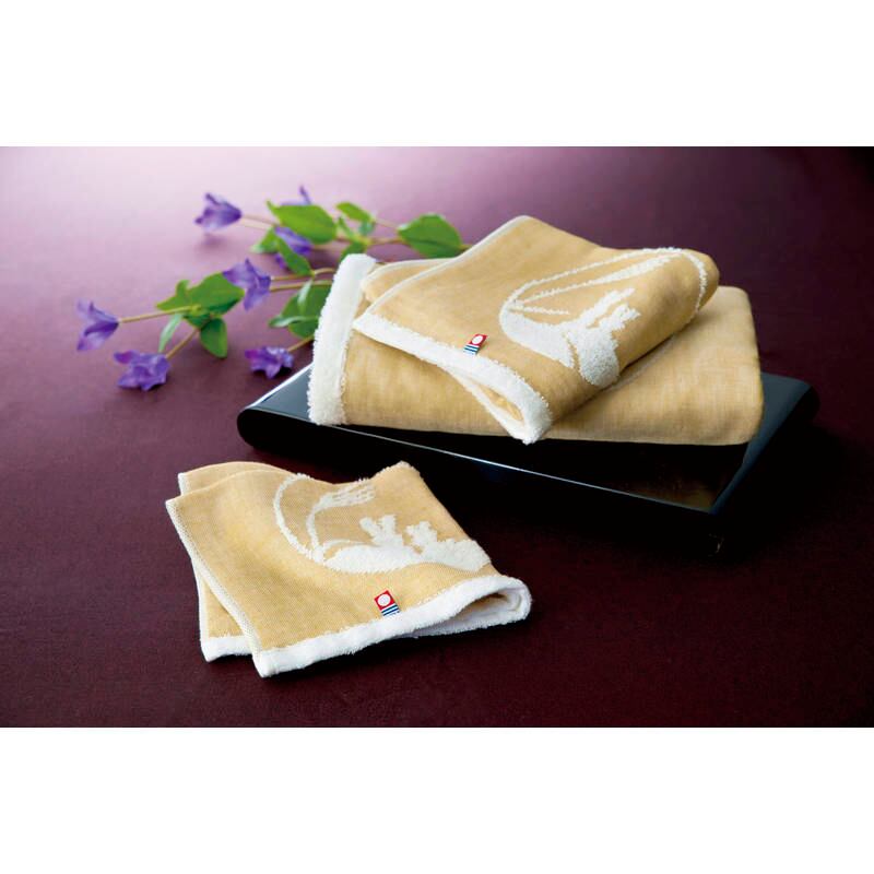 月夜に浮かぶ「うさぎ」を今治のガーゼ織ジャガード技術により表現しております。吸水・速乾性に優れた今治タオルを感謝の気持ちを込めて贈ります。