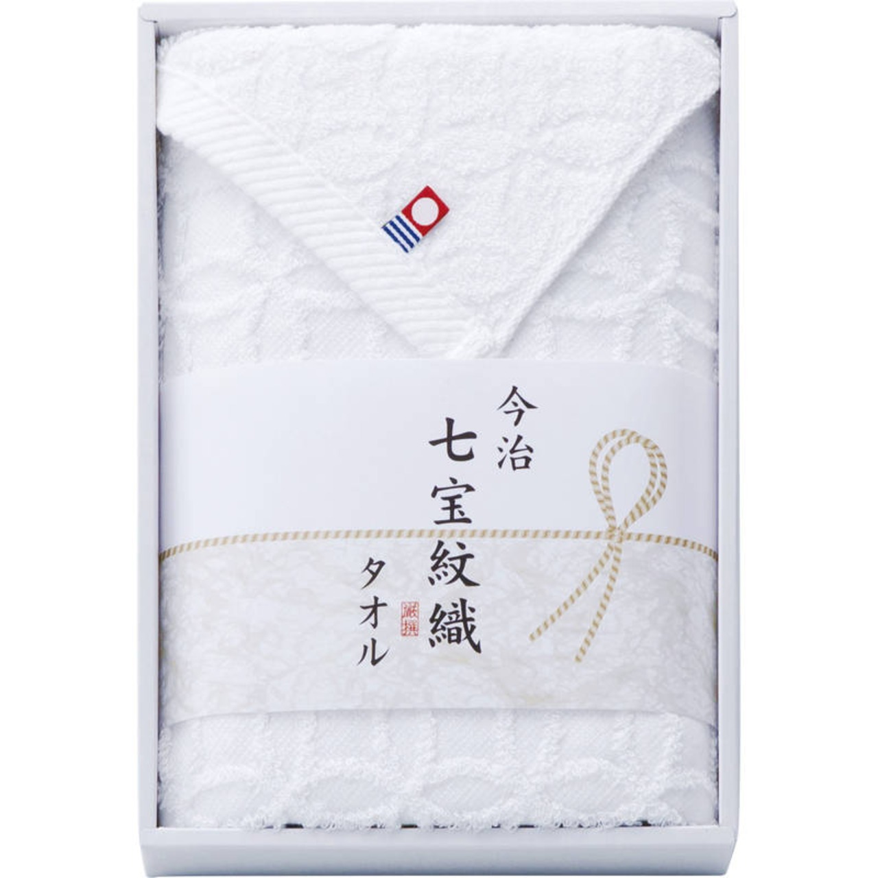 日本古来より伝わる縁起柄【七宝】をモチーフに今治自慢の紋織技術で織り上げた逸品です。