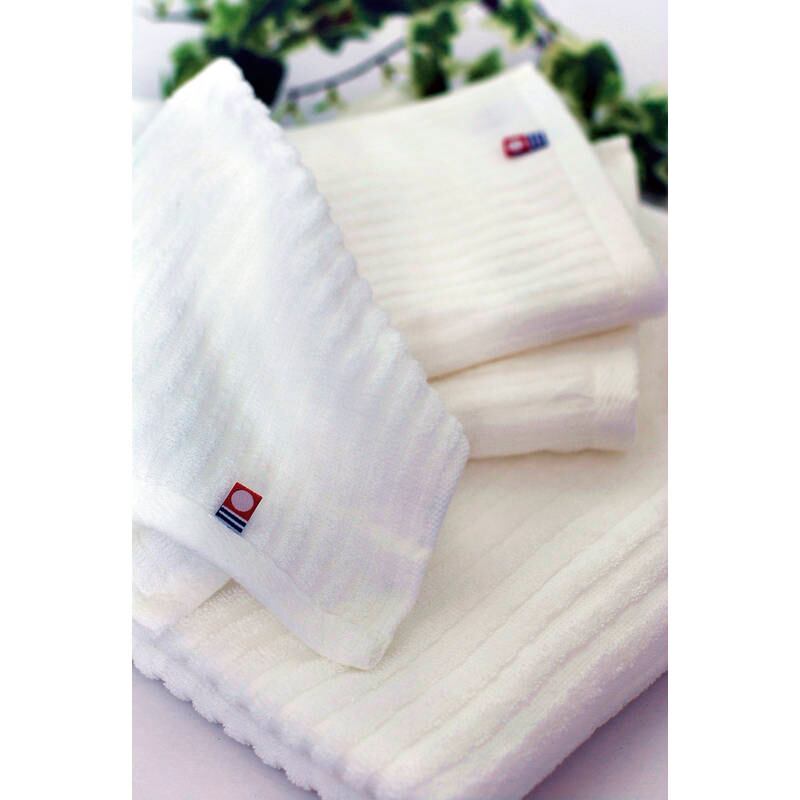 純白の糸をシンプルな畦柄で織り上げた、どんな時でもどなたにでも、使い勝手の良い今治仕立てのタオルギフトです。パイルとコシと変化のある凹凸が、肌触りも良く、拭き心地も爽快です。