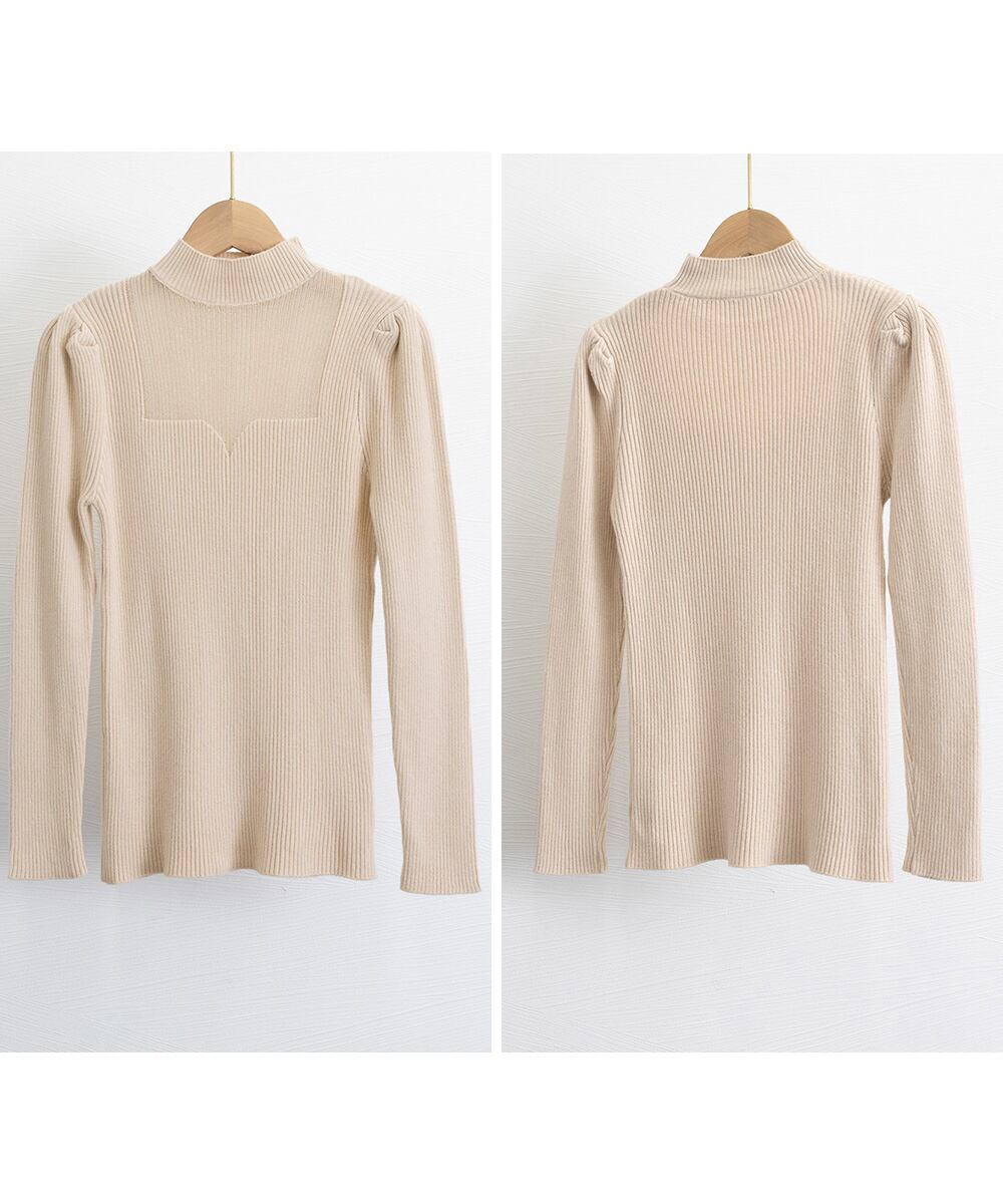 バストに巧みなシースルー切替デザインが施されたニットトップス