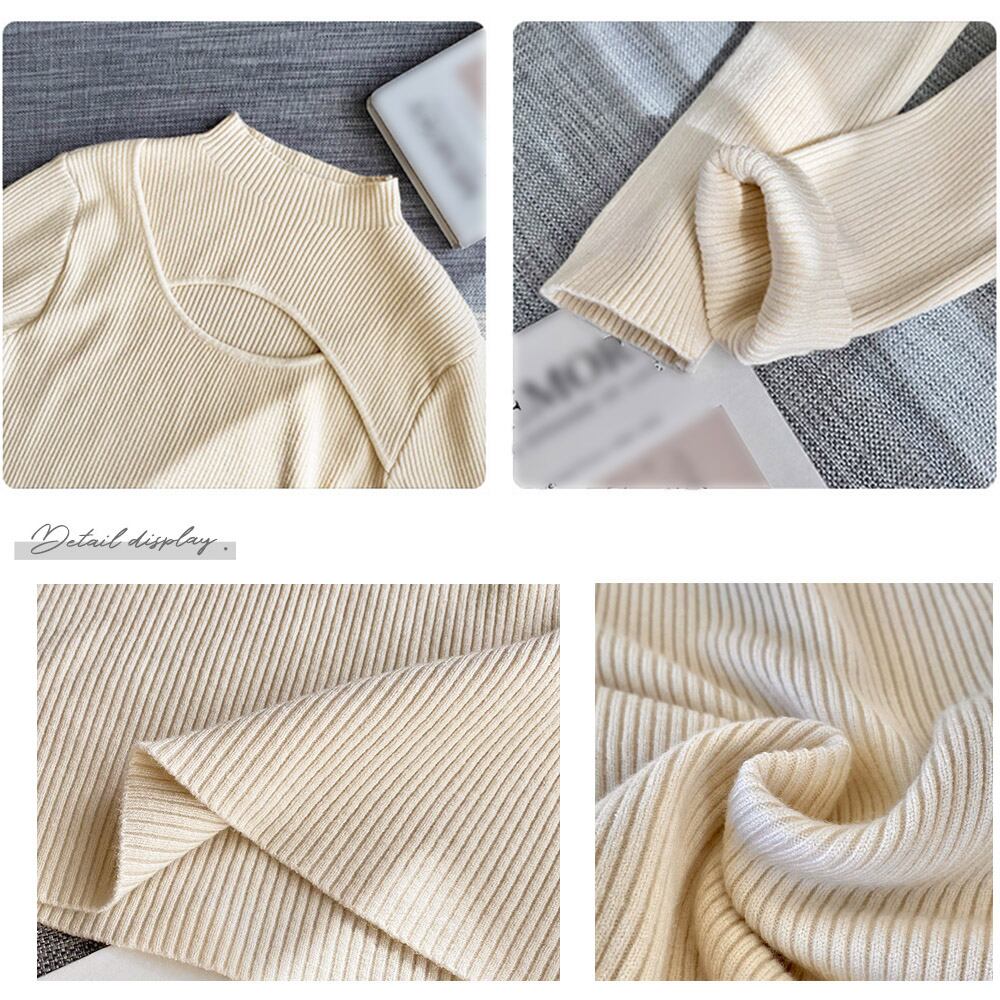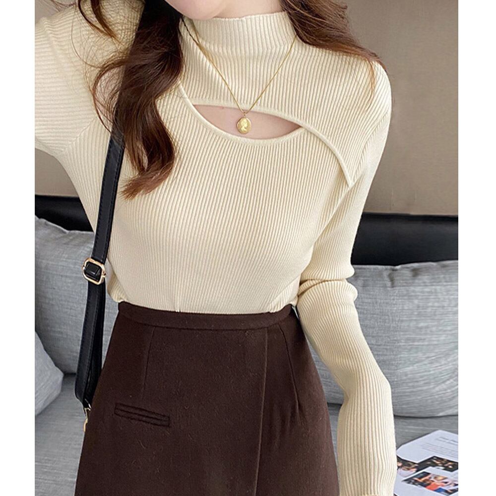 【日本倉庫即納】 ニットトップス 胸開き プチハイネック