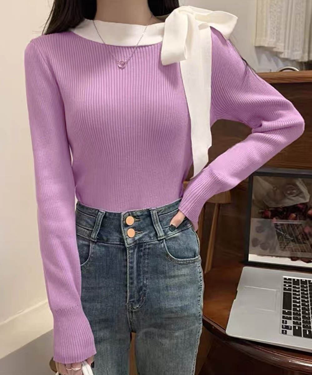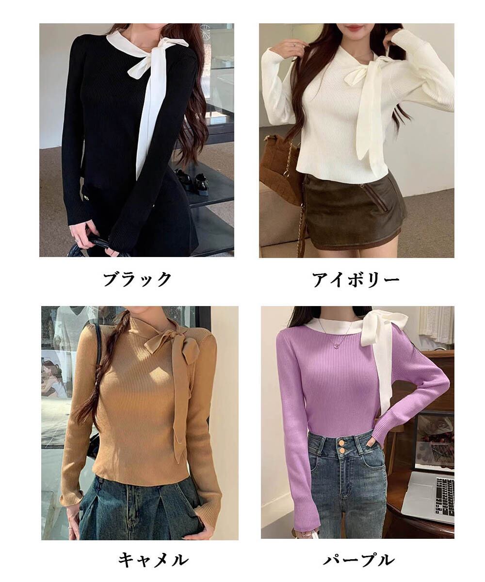 レディース 長袖トップス フェミニン 上品 柔らかい ベーシックニットソー 着回し 無地 可愛いエレガントニットインナー