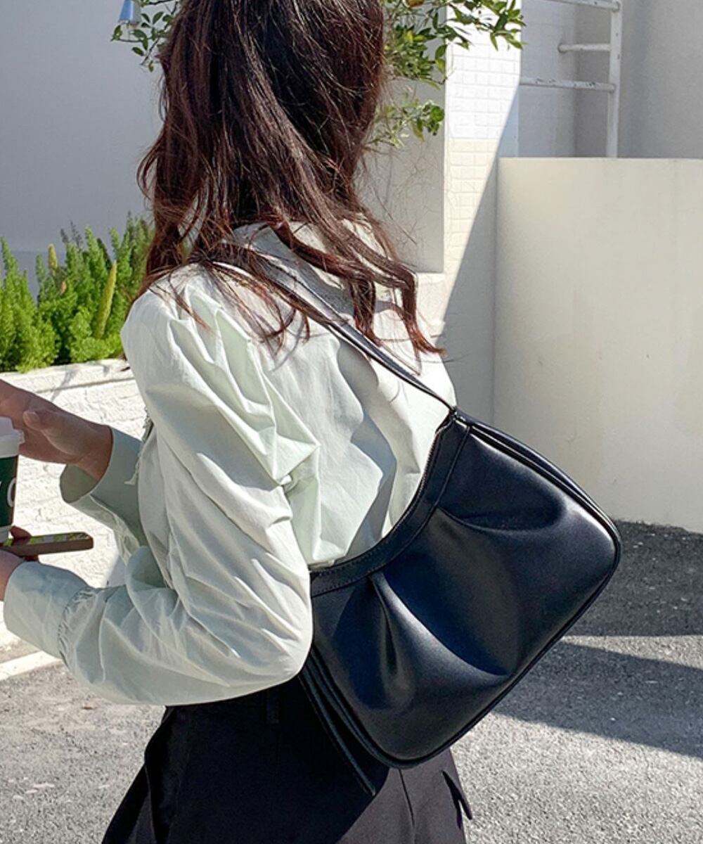 リンクル加工が施された、トレンド感たっぷりのバッグです。