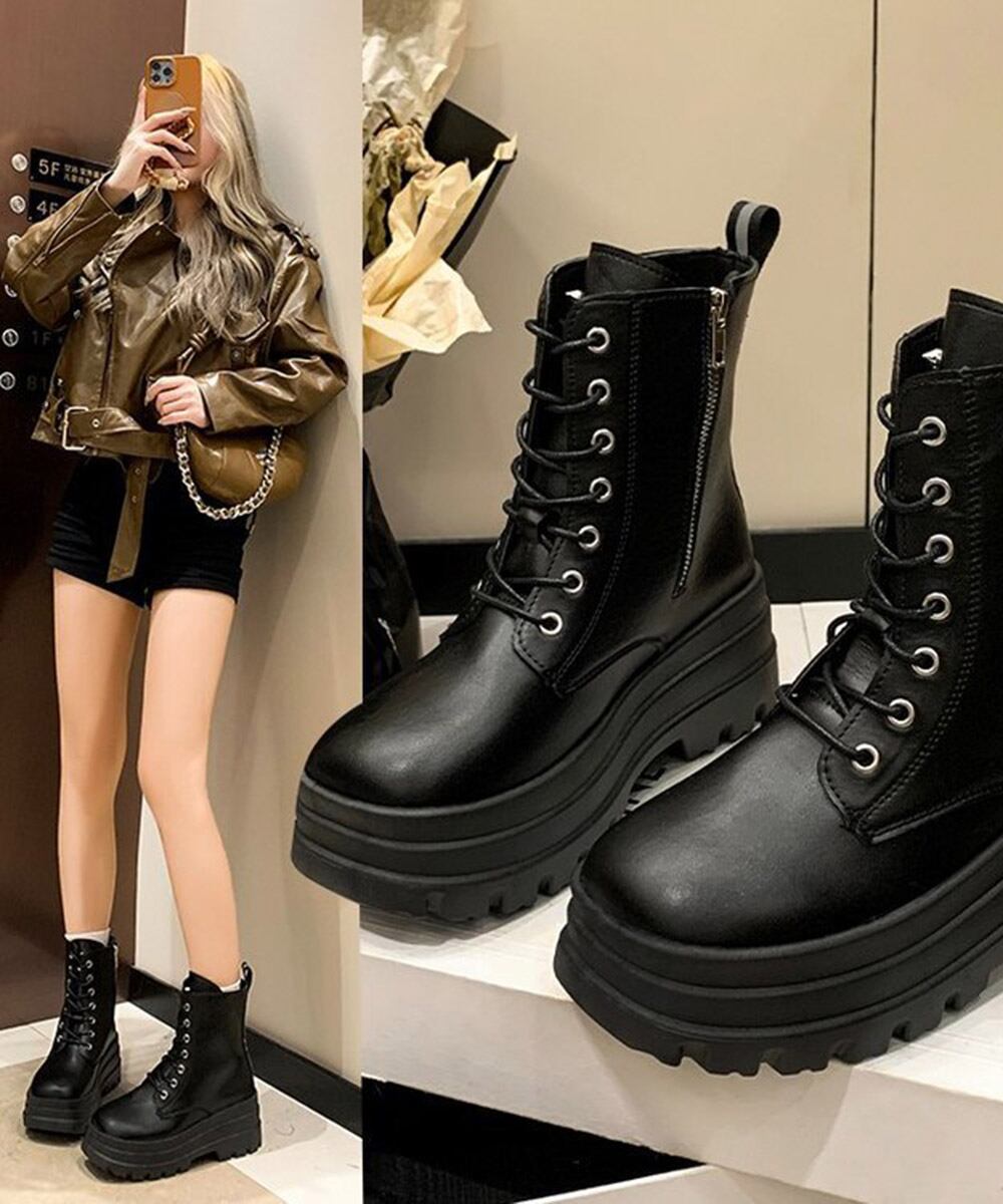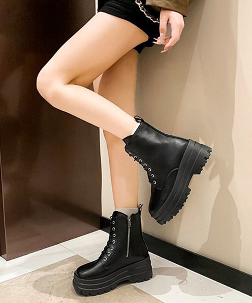 【日本倉庫即納】 ショートブーツ厚底 ワークブーツ美脚脚長