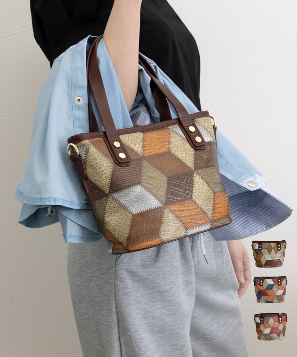 ミニトートバッグ 幾何学模様 斜めがけバッグ カジュアル おしゃれ ハンドバッグ 菱格2WAYバッグ 大人可愛い BAG