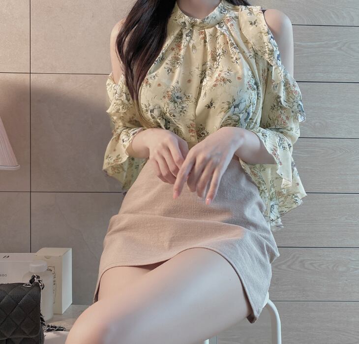 シフォンブラウス レディース フレアスリーブ 肩あきトップス 薄手 肩見せ 夏服 かわいい 韓国風 フェミニン おしゃれ