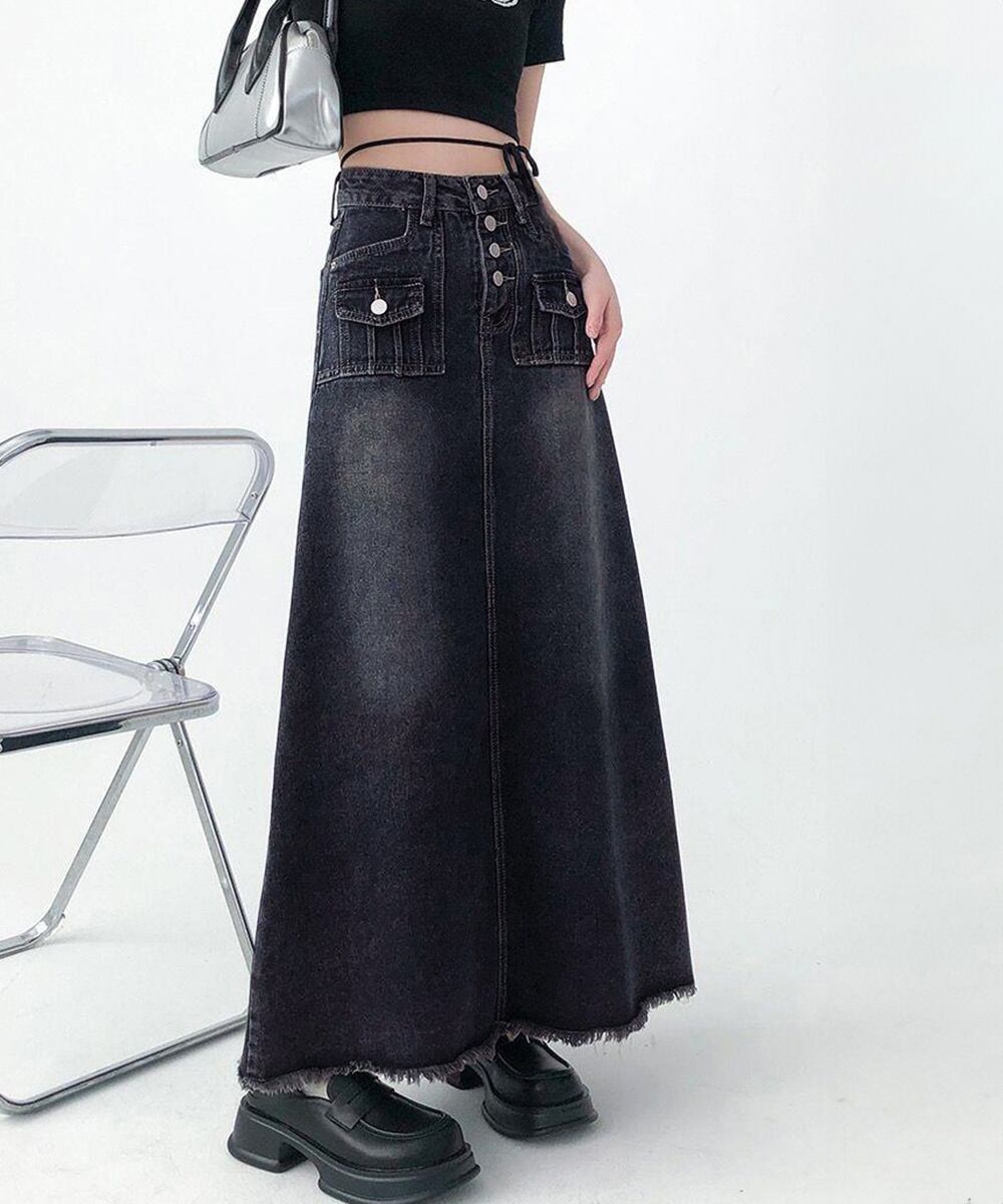 【日本倉庫即納】 レトロデニムスカート ハイウエスト 韓国