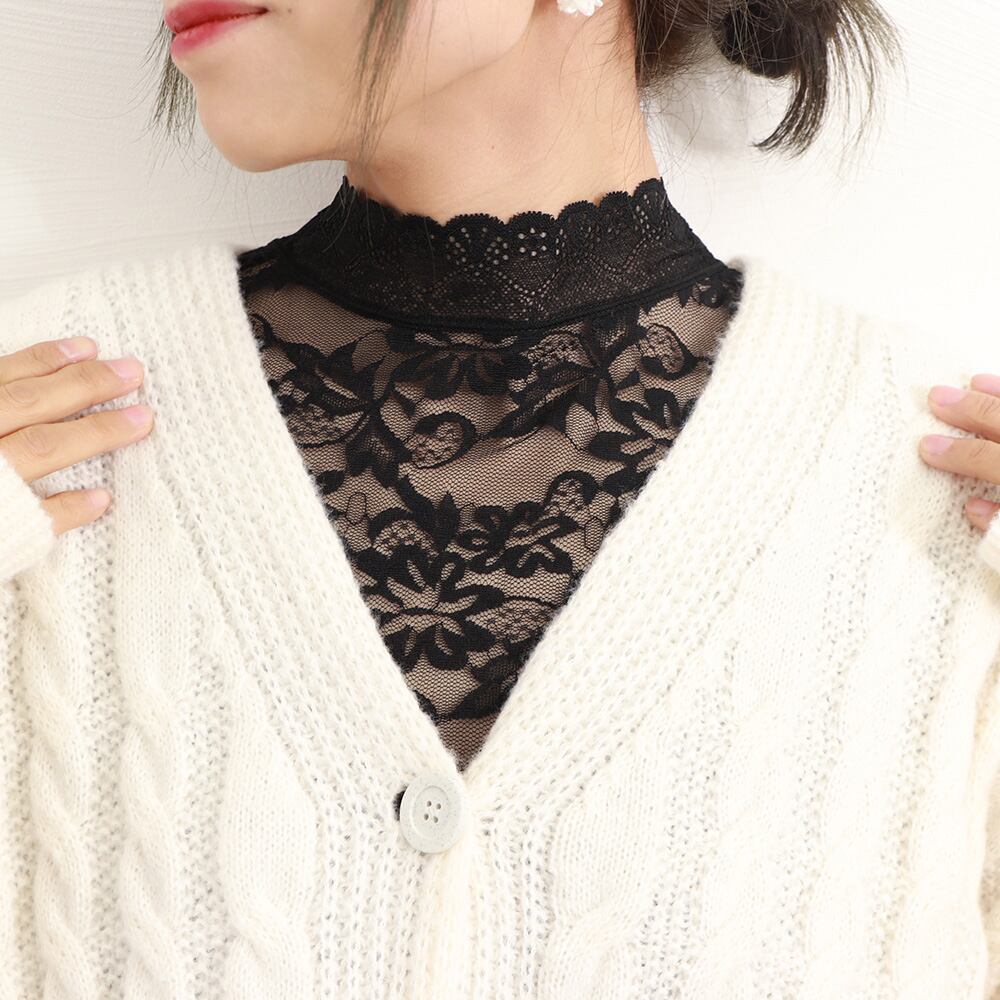 可愛いレースシャツ ハイネック 立ち襟 レイヤード つけ襟
