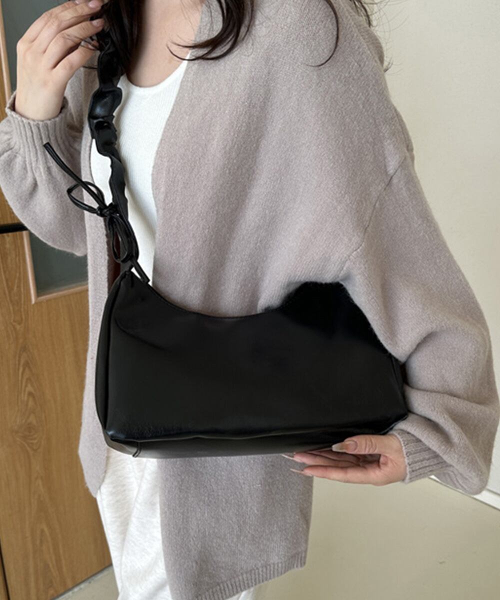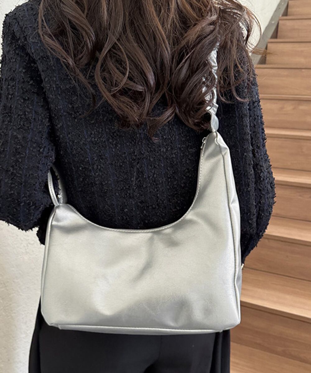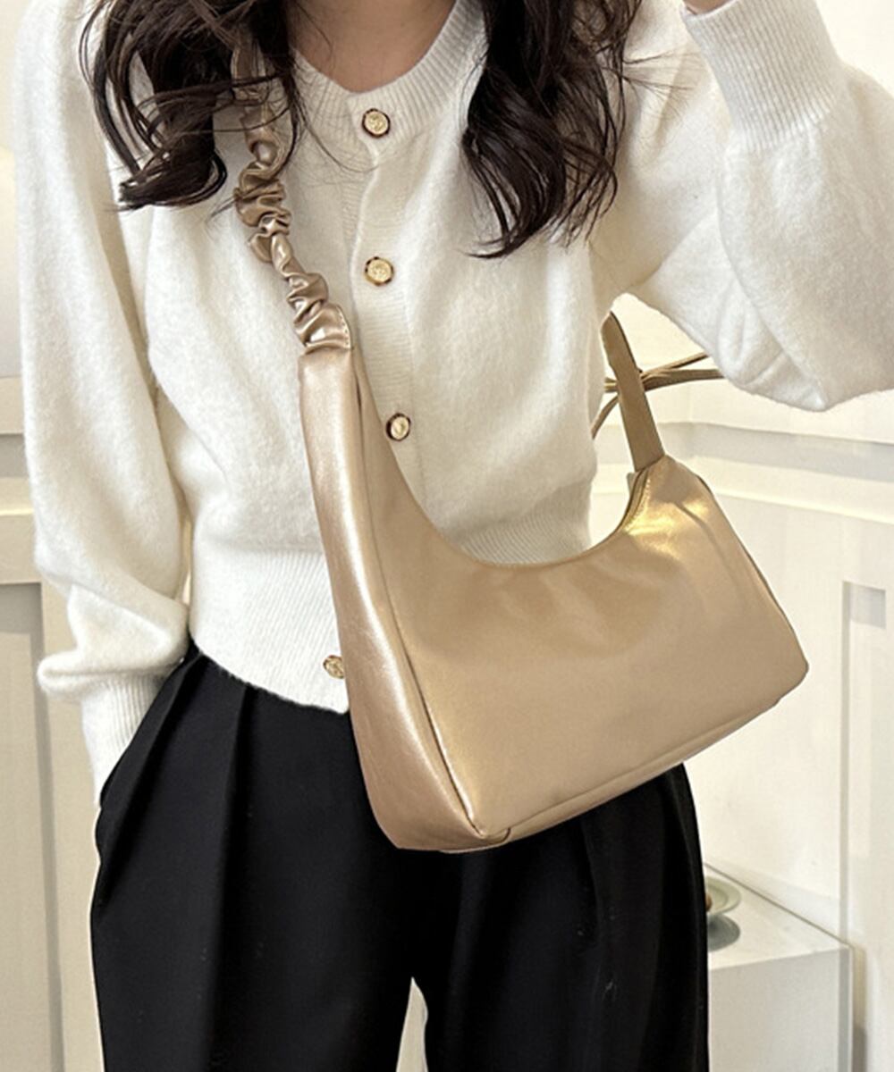 シンプルなデザインが魅力のシーズンレスで使えるショルダーバッグ。
