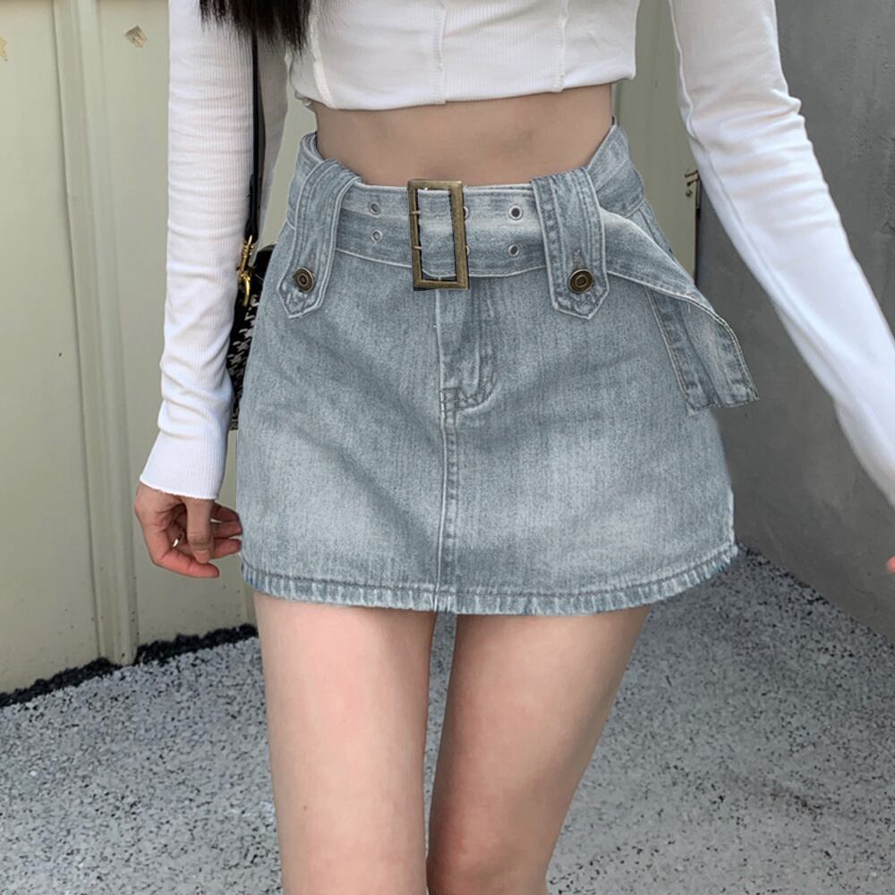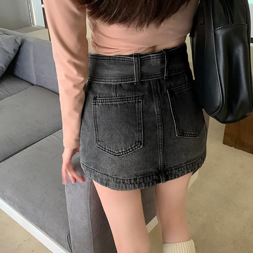 同素材の大振りのベルトが付属されたデニムキュロットスカート