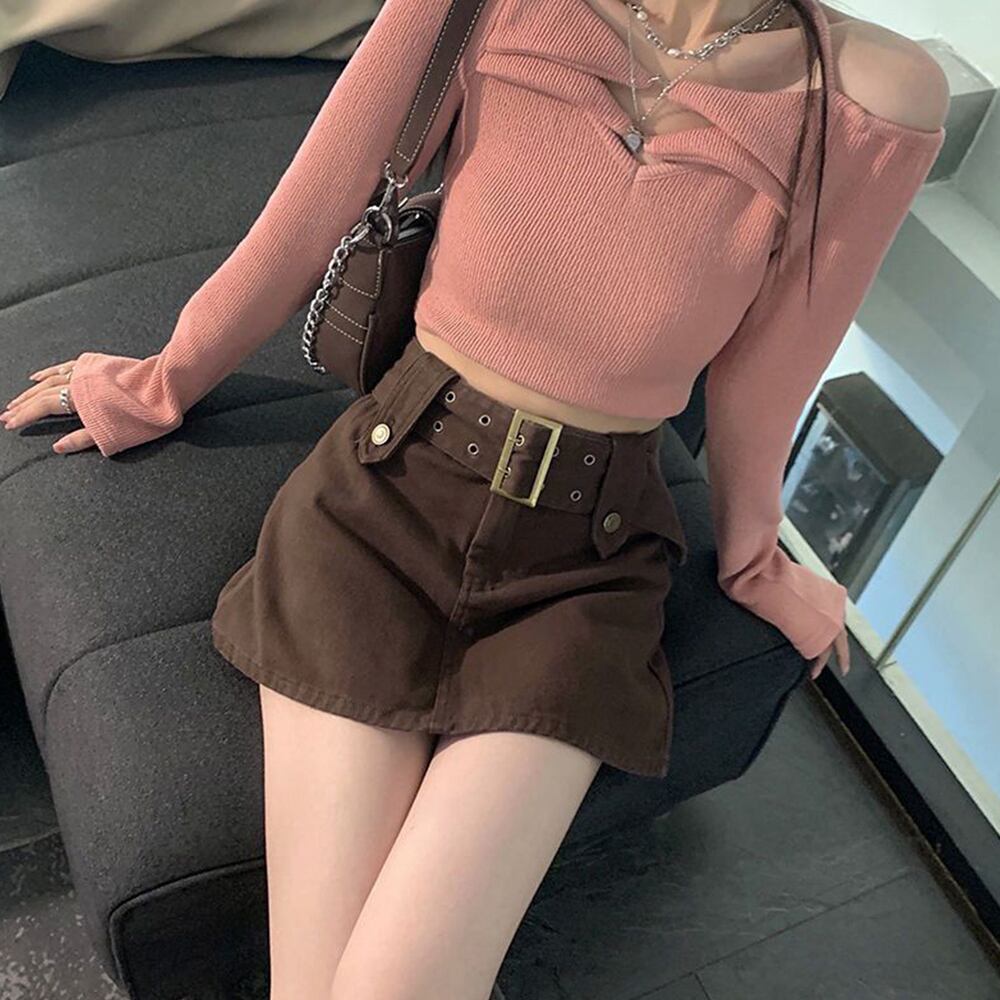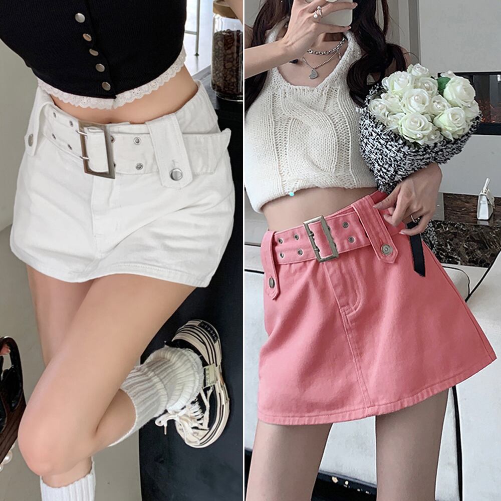 レディース ベルト付きミニスカパン チラ見せ防止 タイトスカート セクシー ショートスカート 韓国おしゃれ 美脚ボトムス