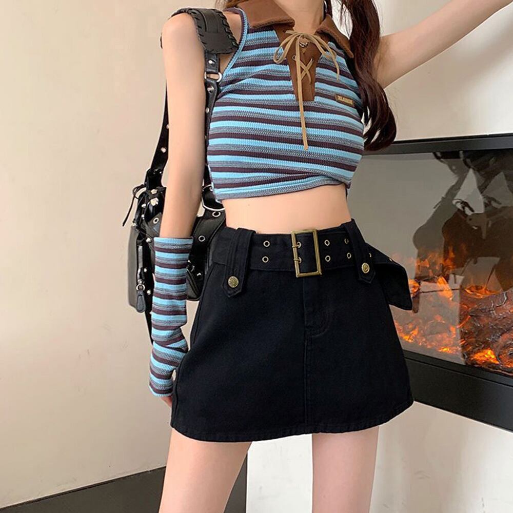 春秋スカートレトロ 細見え台形スカート カッコイイボトムス