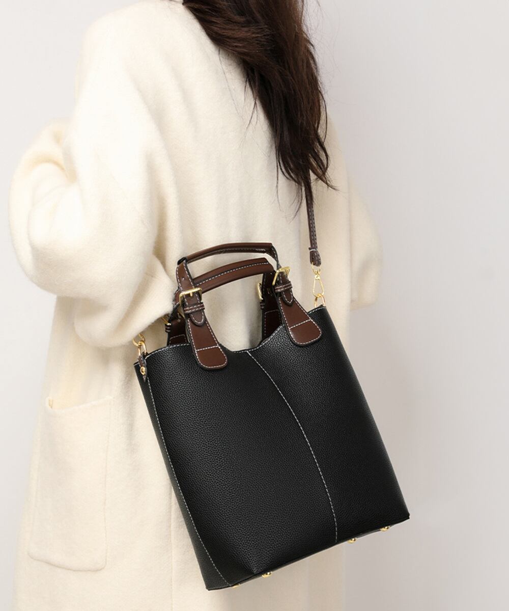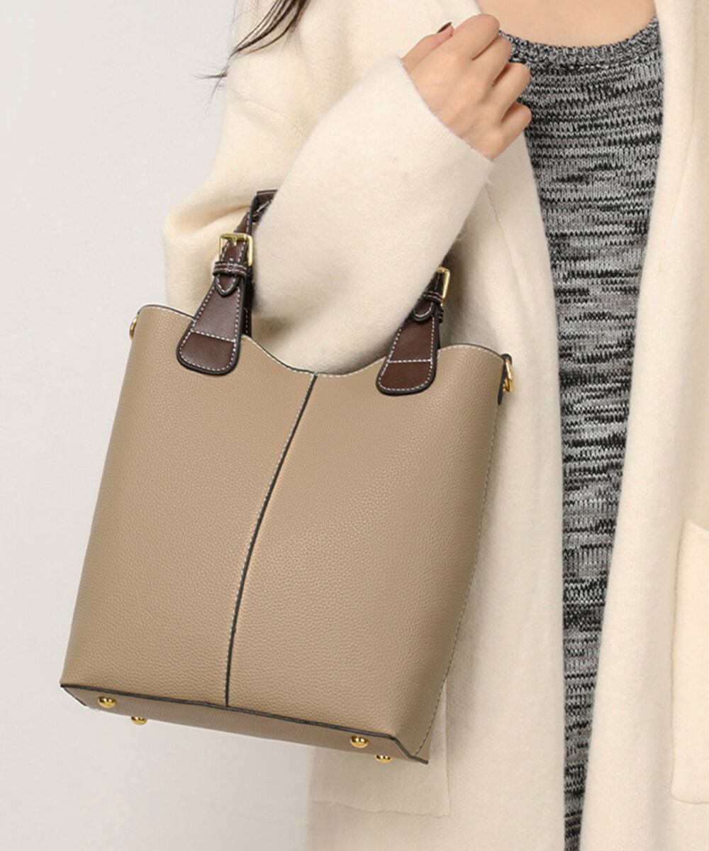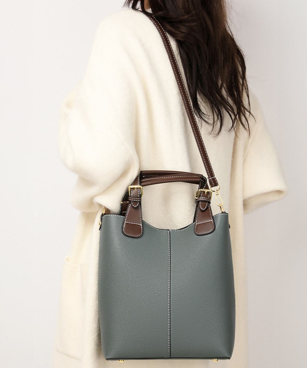 オフィスカジュアル バケットバッグ 上品合皮カバンOL