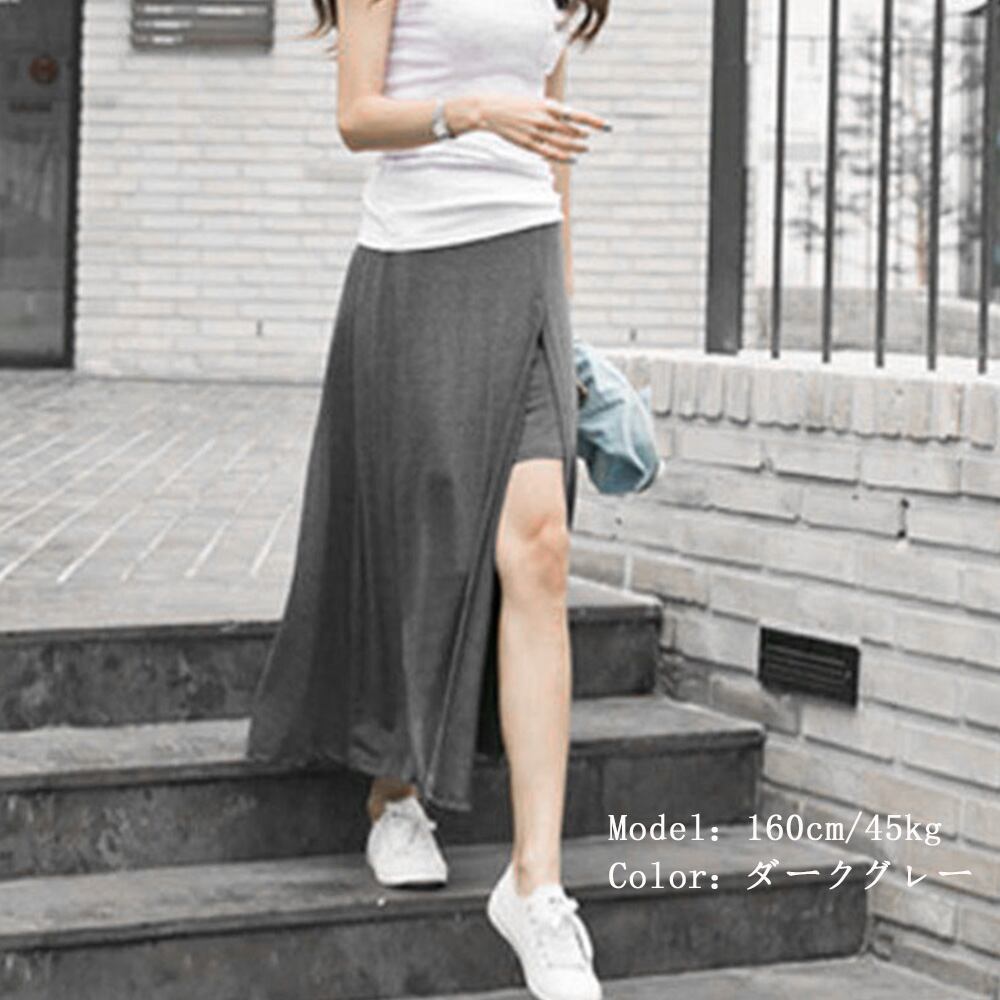 フレアスカート レディース ウエストゴム 深スリットスカート 薄手春夏スカート きれいめカジュアル モーダルスカート美脚