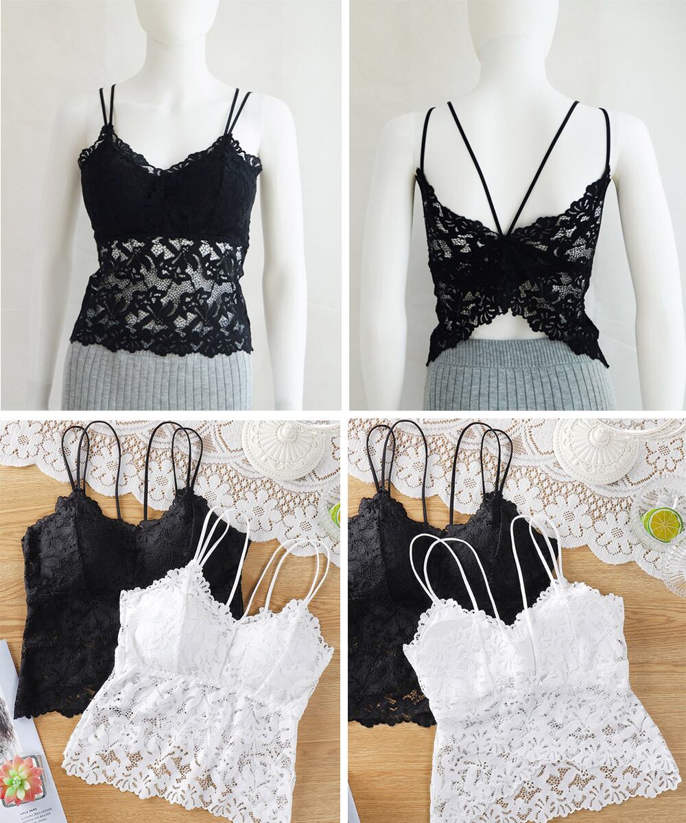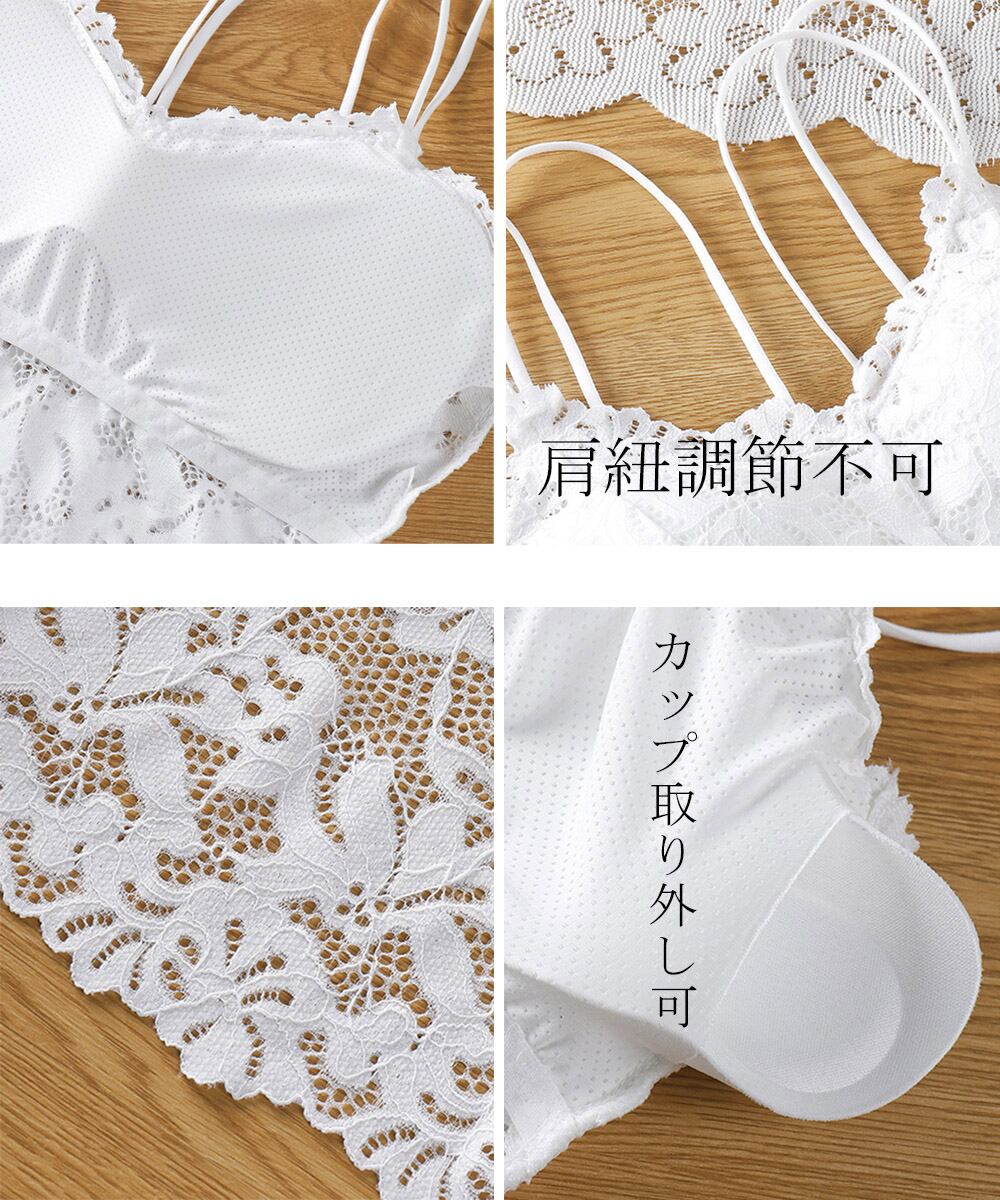 インナー パッド付き ノンワイヤー 韓国風 透け 肌着 バックレース 背中見せ