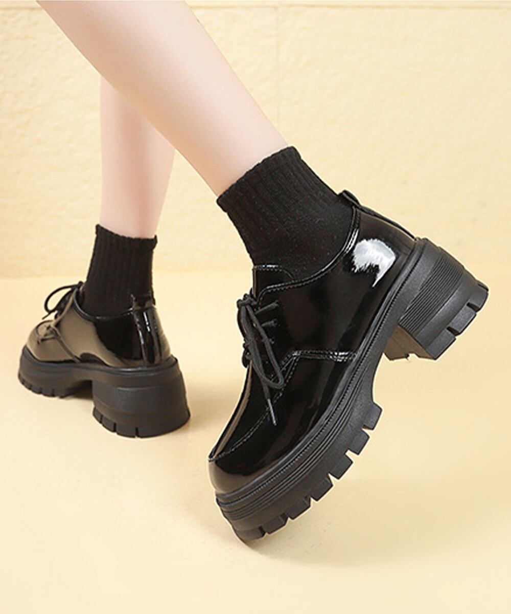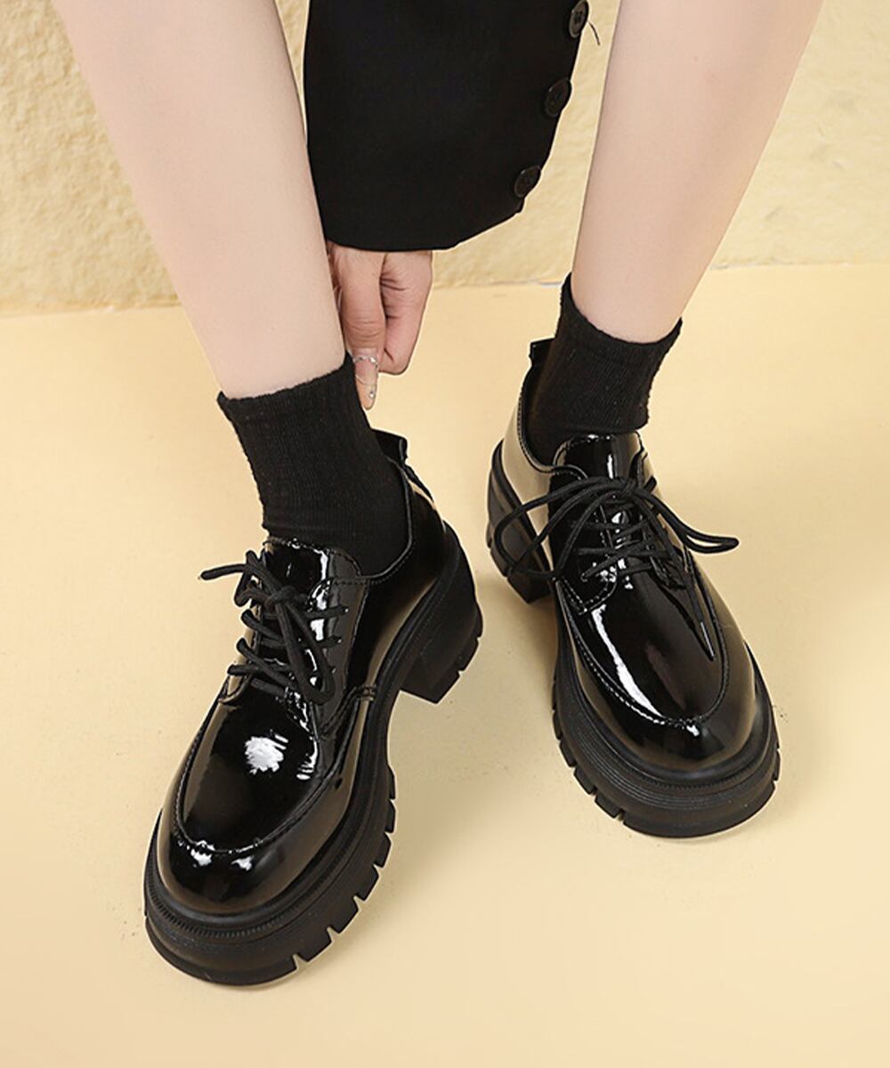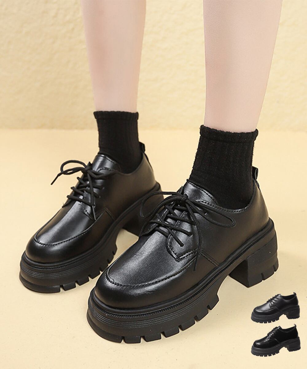 【日本倉庫即納】 ローファー レディース 厚底 編み上げ