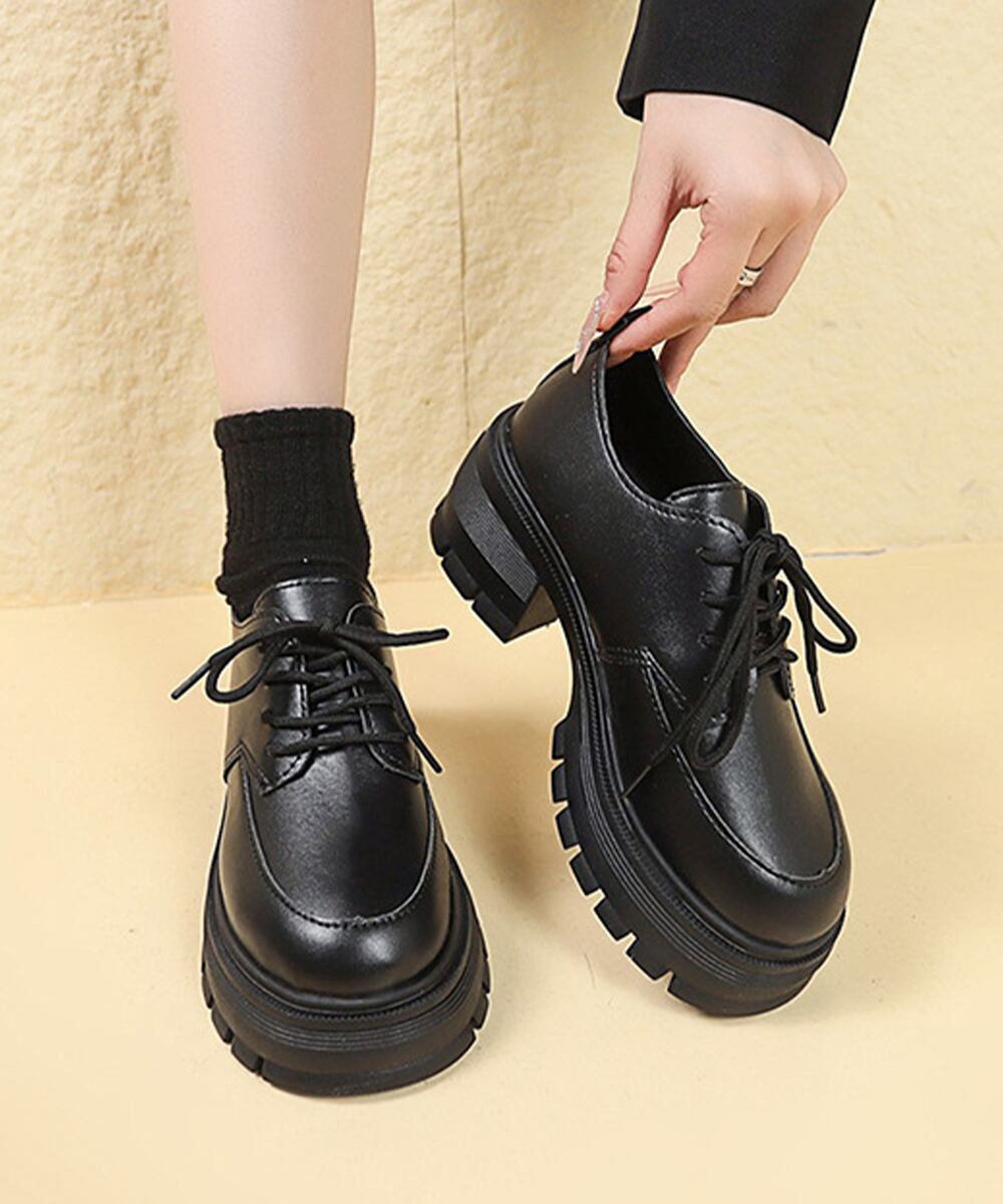 【日本倉庫即納】 ローファー レディース 厚底 編み上げ_2