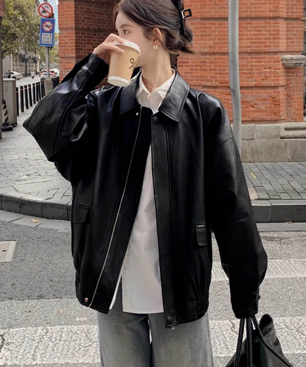ライダースジャケット かっこいいブルゾン PUレザー 長袖アウター フェイクレザージャケット オーバーサイズ 防寒防風