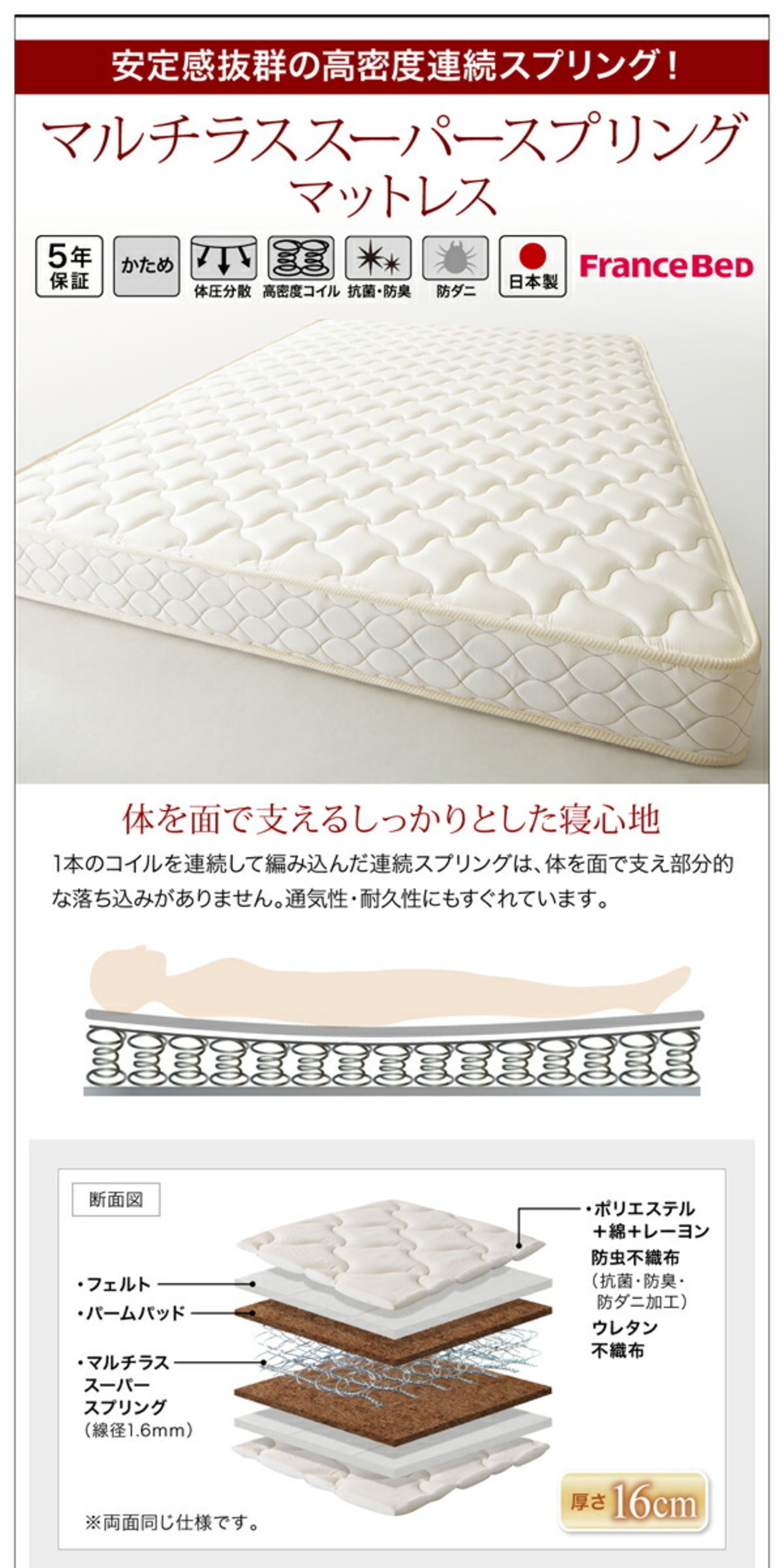 薄型スタンダードボンネルコイルマットレス付き 縦開き シングル 深さラージ 組立設置付