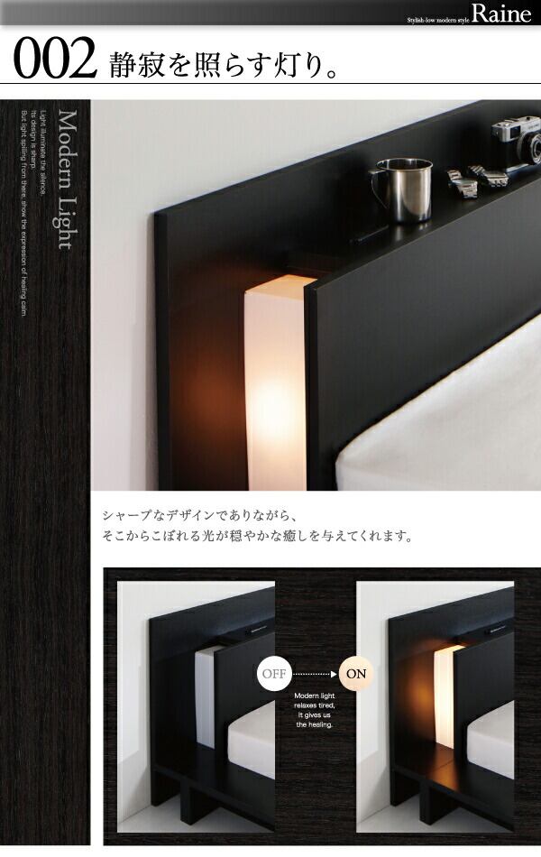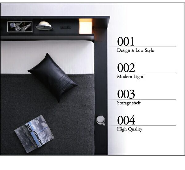 モダンライト・コンセント付きローベッド プレミアムポケットコイルマットレス付き セミダブル 組立設置付
