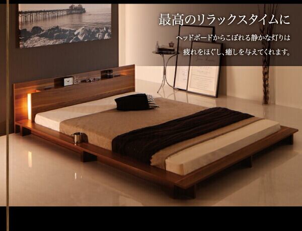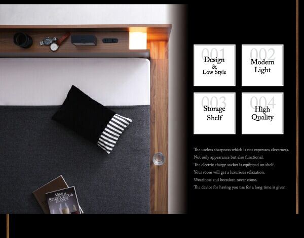 モダンライト・コンセント付きローベッド プレミアムボンネルコイルマットレス付き セミダブル 組立設置付
