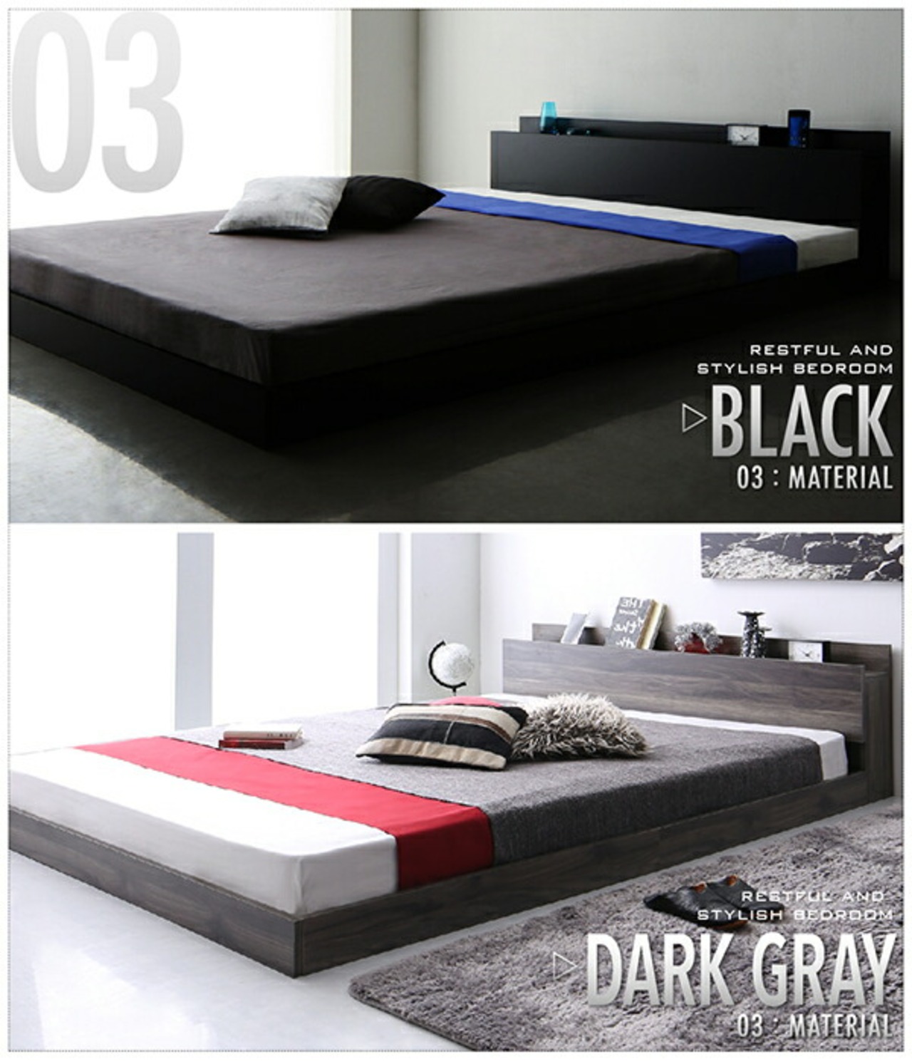 棚・コンセント付きフロアベッド スタンダードボンネルコイルマットレス付き セミダブル