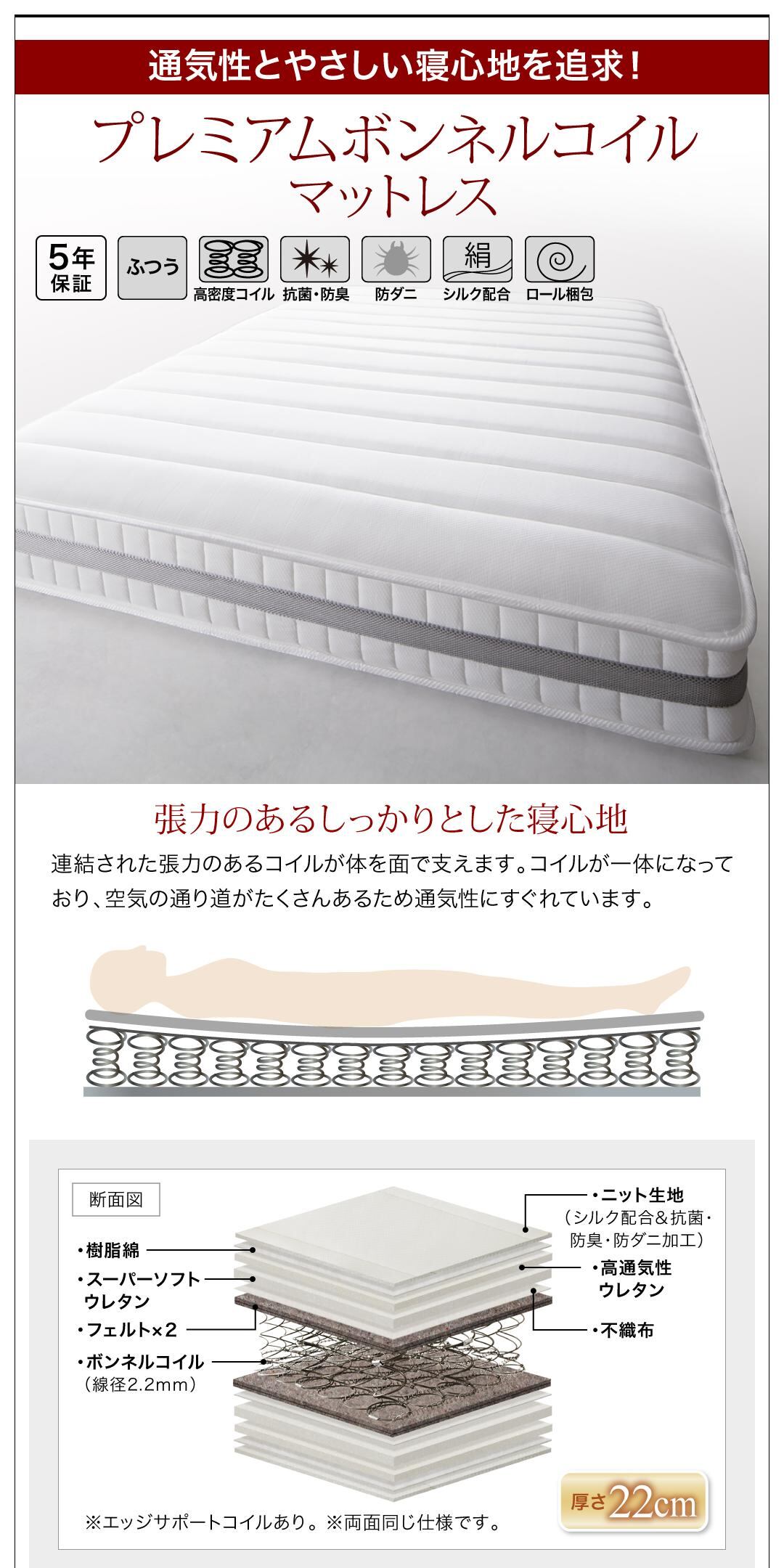 プレミアムボンネルコイルマットレス付き セミダブル