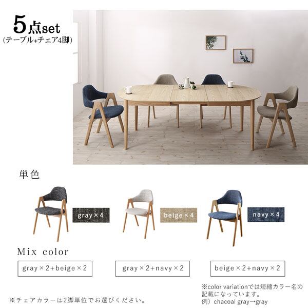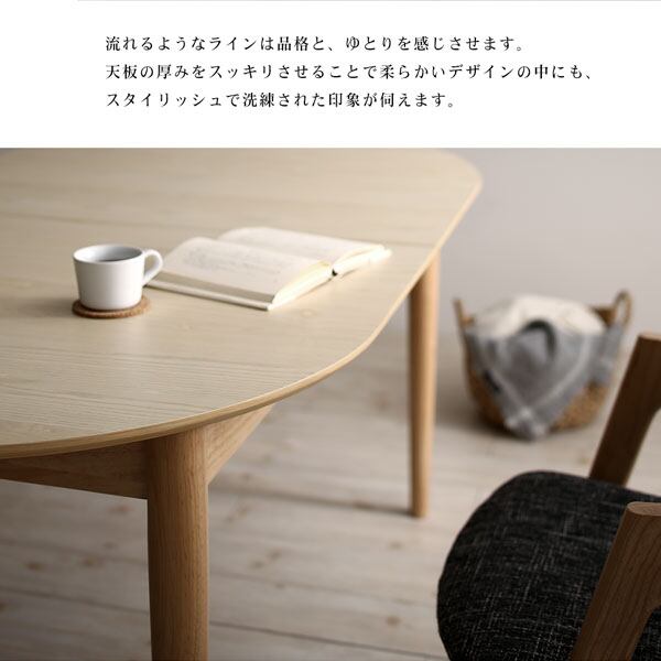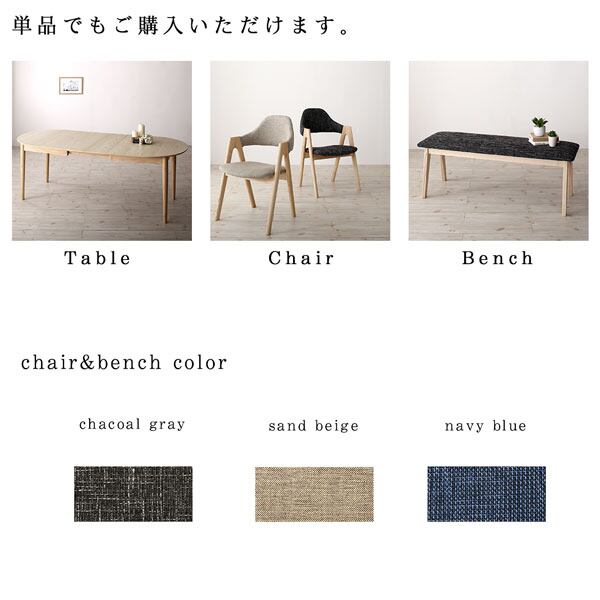 天然木アッシュ材 伸縮式オーバルダイニング 4人 4点セット(テーブル+チェア2脚+ベンチ1脚) W160-210