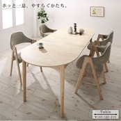 天然木アッシュ材 伸縮式オーバルダイニング 4人 4点セット(テーブル+チェア2脚+ベンチ1脚) W160-210 組立設置付