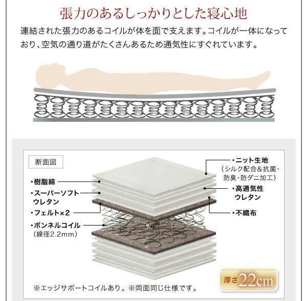 プレミアムボンネルコイルマットレス付き クイーン(Q×1)