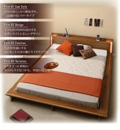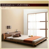 モダンライト・棚・コンセント付きデザインフロアローベッド プレミアムポケットコイルマットレス付き クイーン(Q×1) 組立設置付