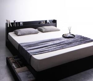 棚・コンセント付収納ベッド スタンダードボンネルコイルマットレス付き クイーン(Q×1)
