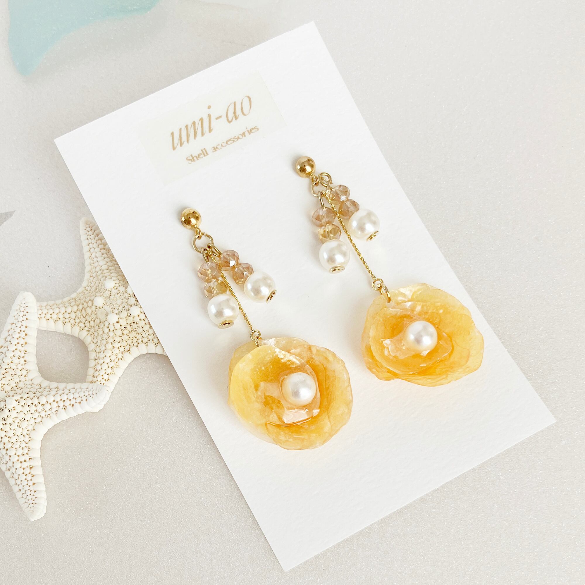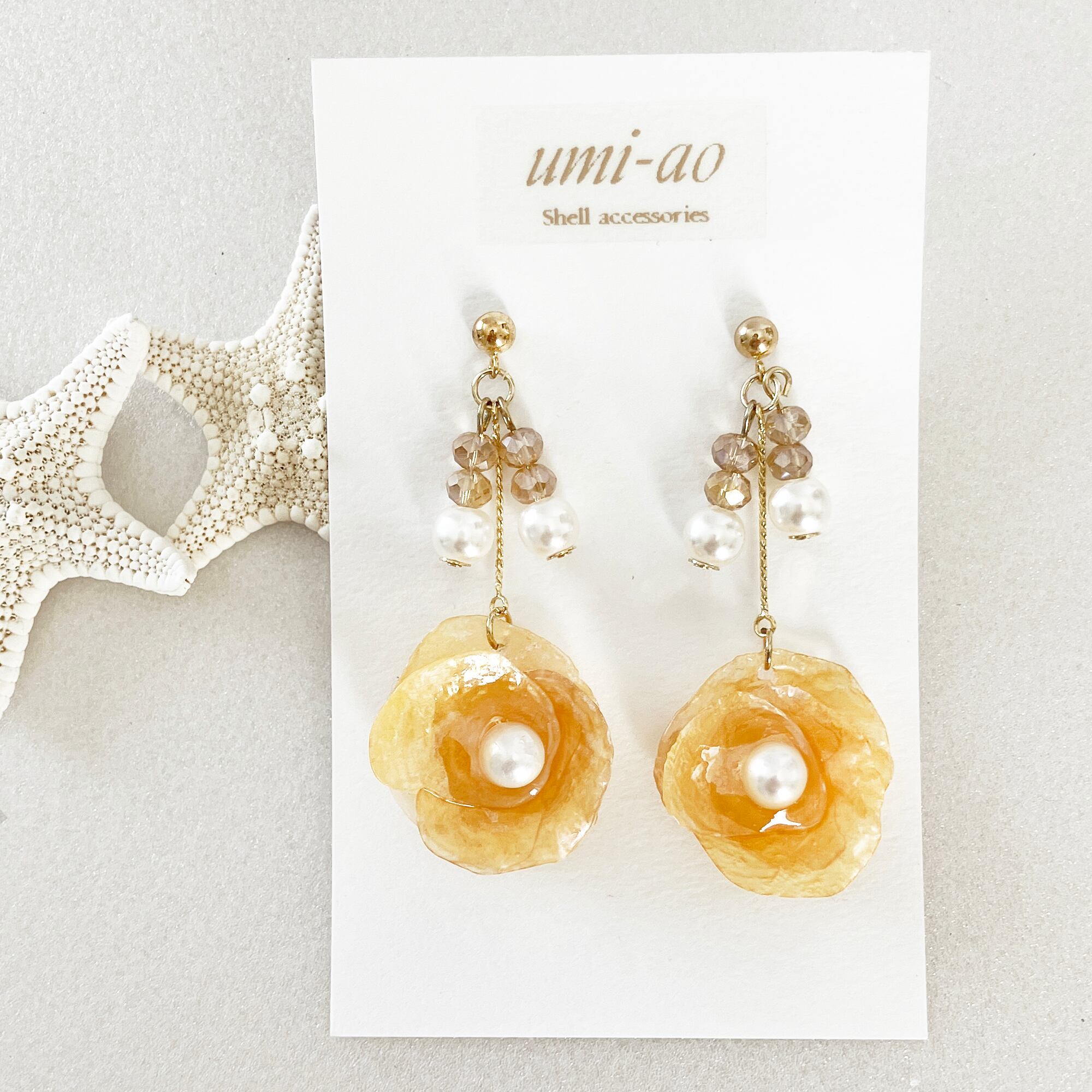 大人きれいめ*オレンジシェルの繊細揺れピアス