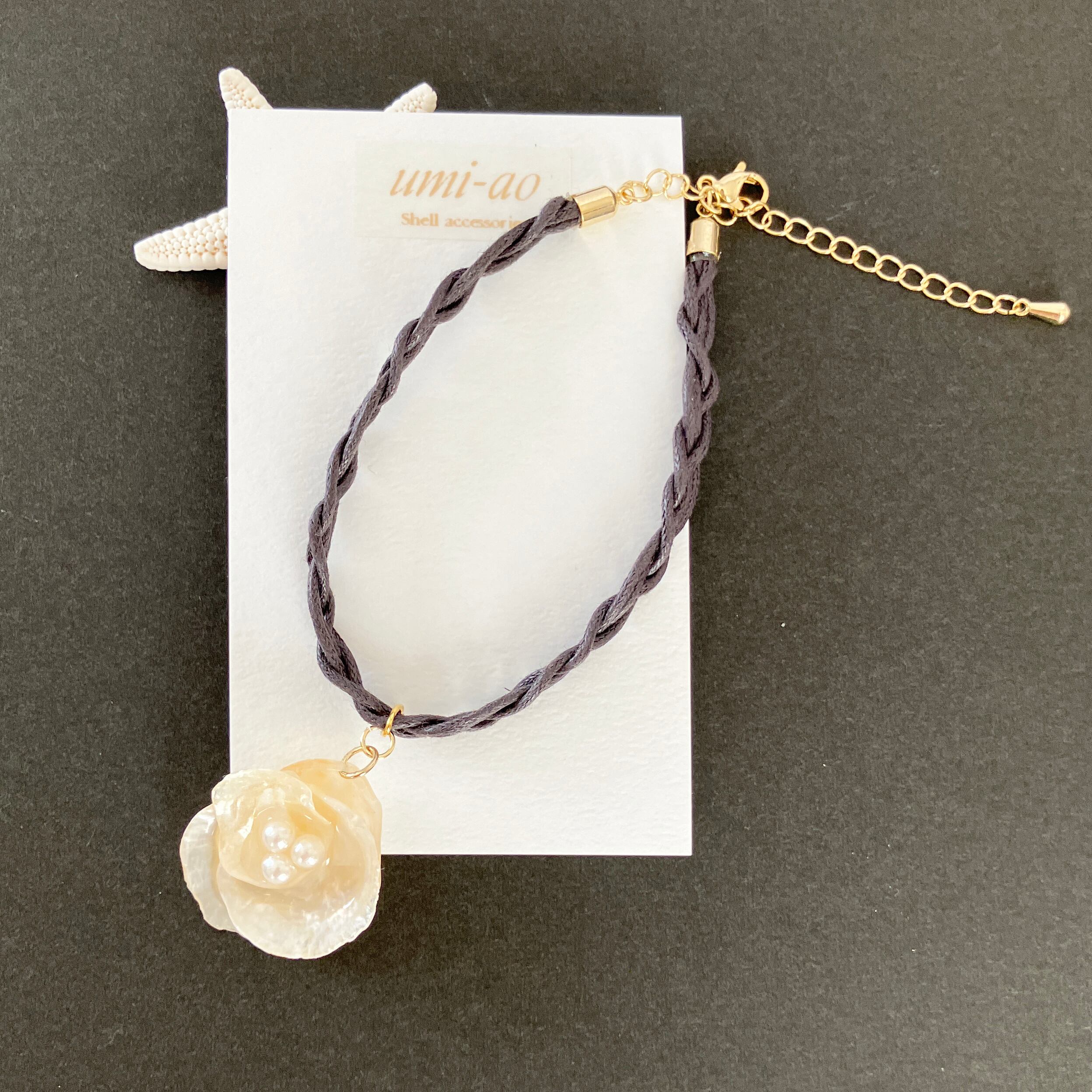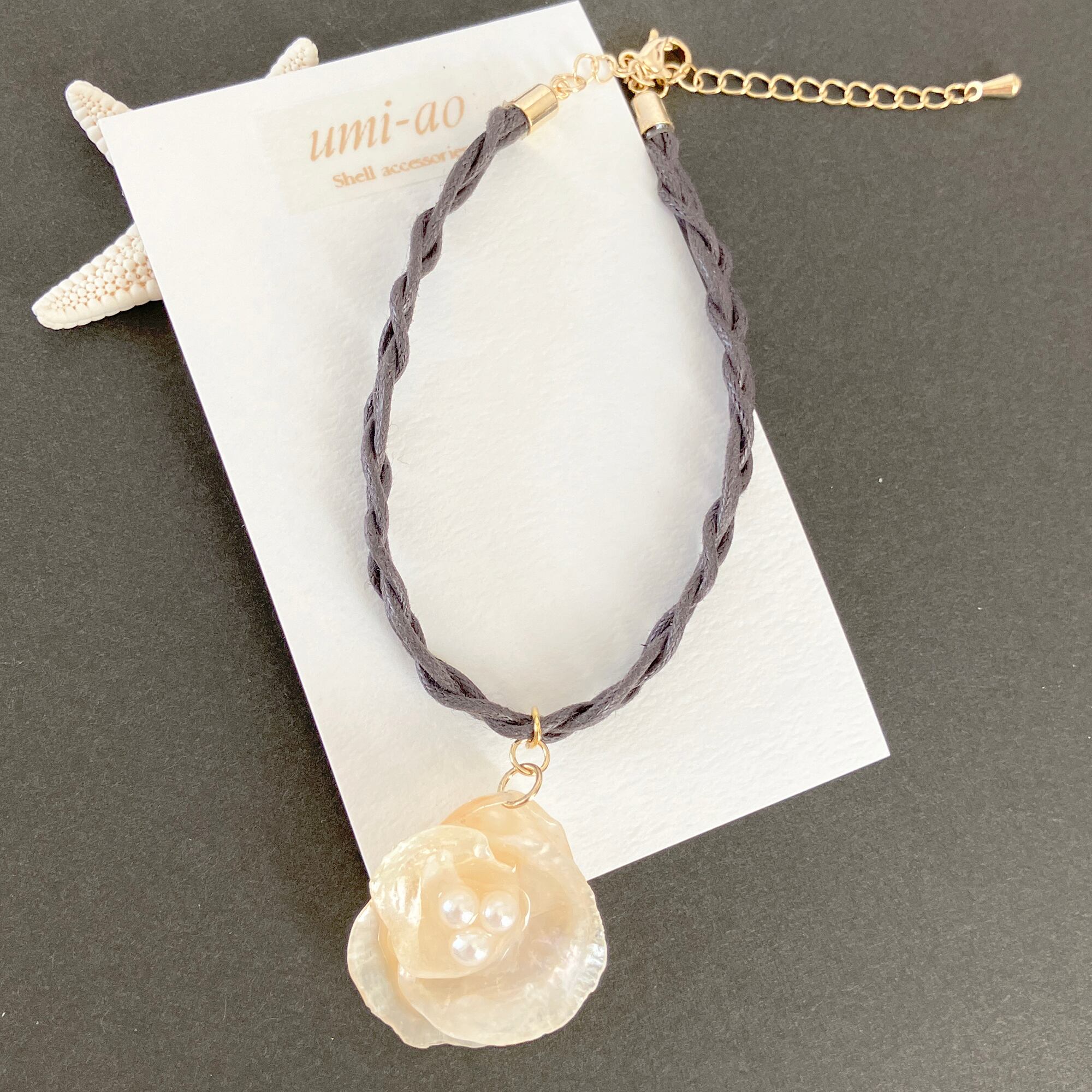 素材:天然貝殻・ロウ引きひも