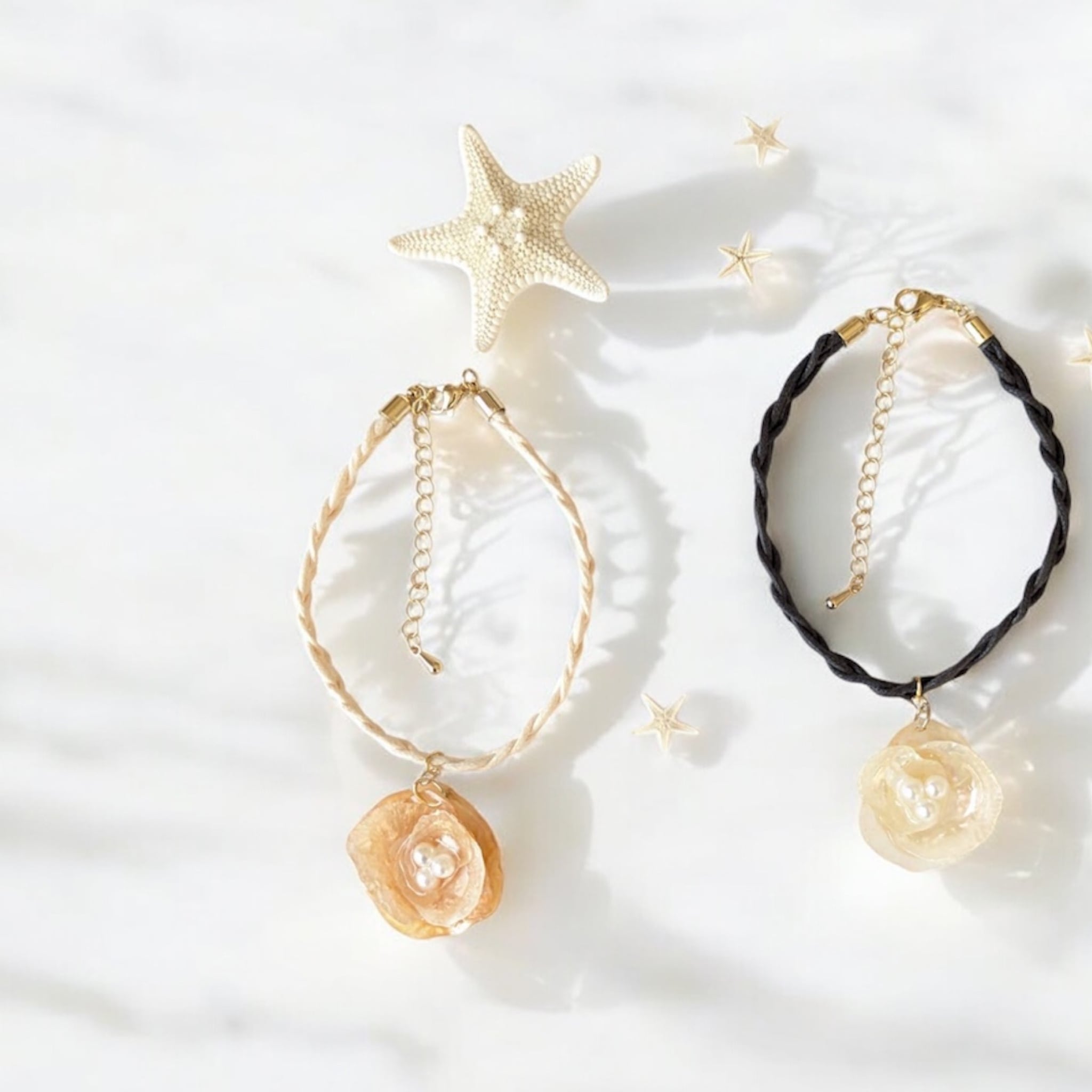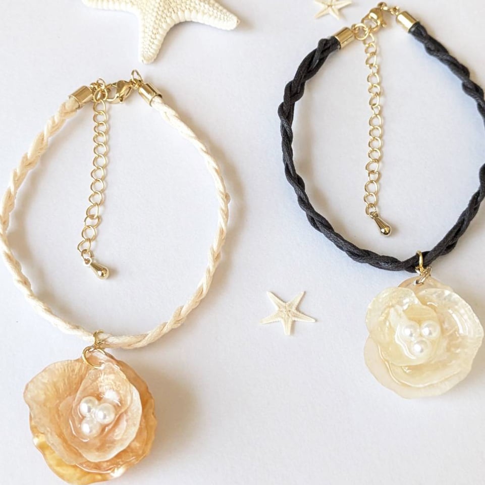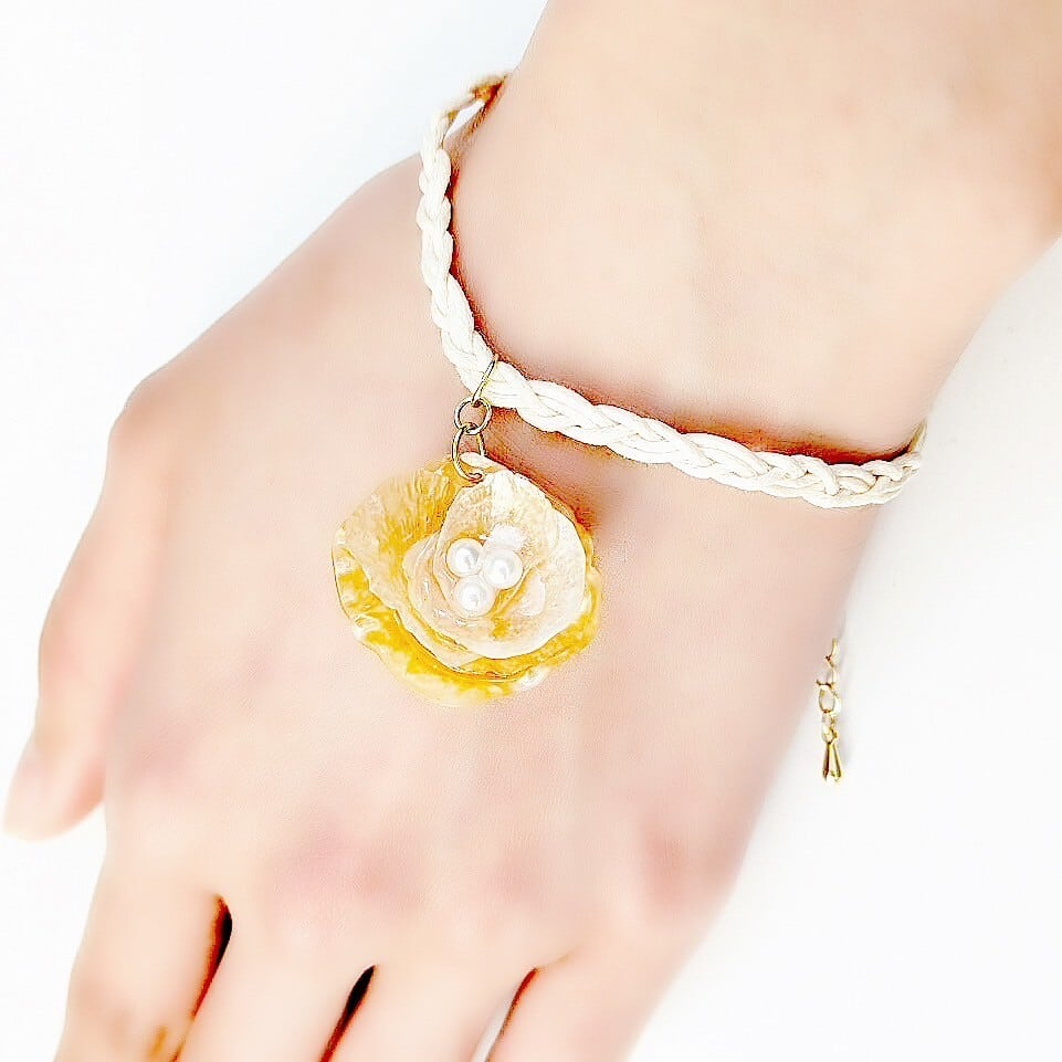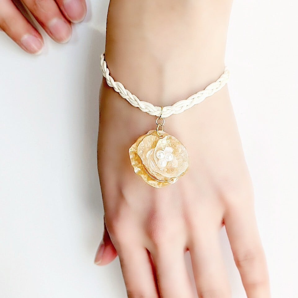 幸せのしずく ナミマガシワの手元きらめくブレスレット