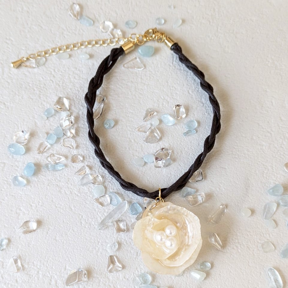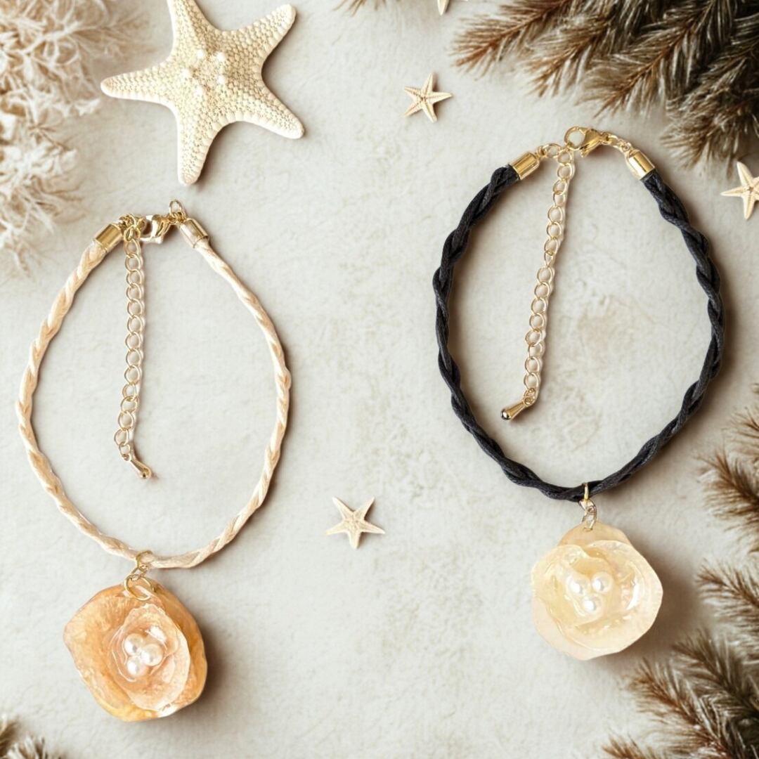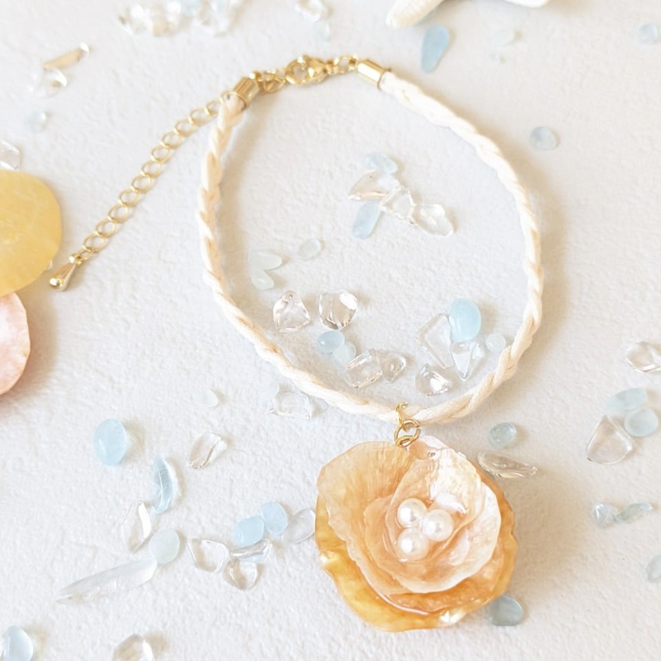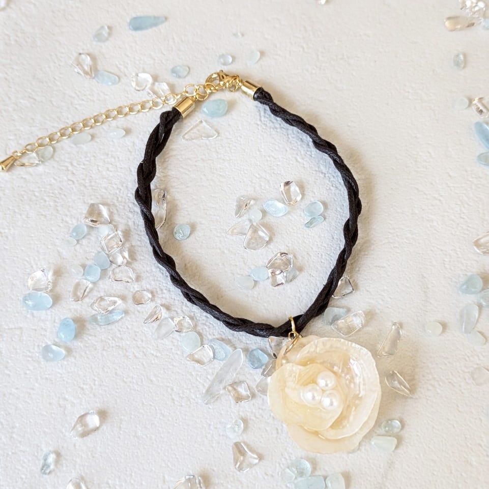 幸せのしずく ナミマガシワの手元きらめくブレスレット