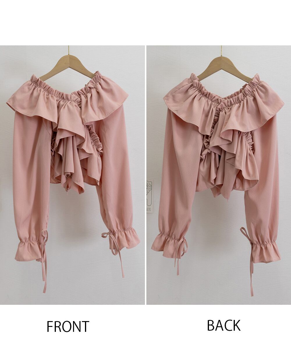 【日本倉庫即納】 フリルブラウス オフショルブラウス 長袖