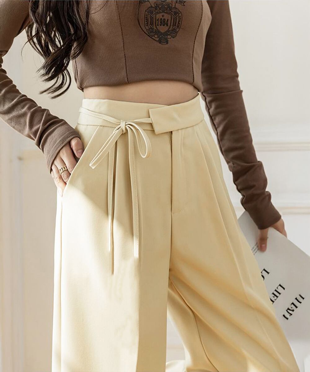 【日本倉庫即納】 ストレートパンツ リボンスラックス 美脚