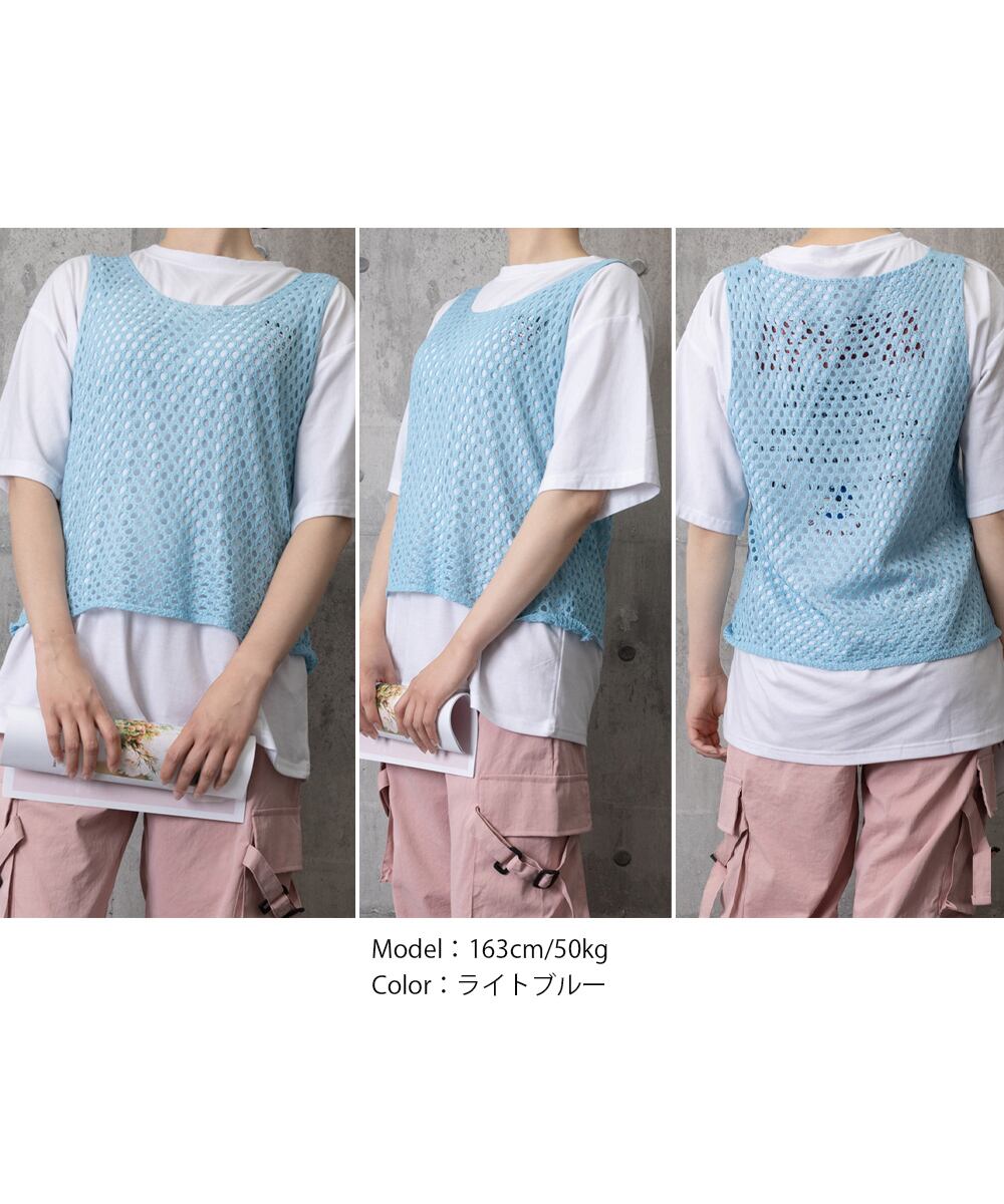 【日本倉庫即納】 透かし編みニットベスト 重ね着ニットジレ