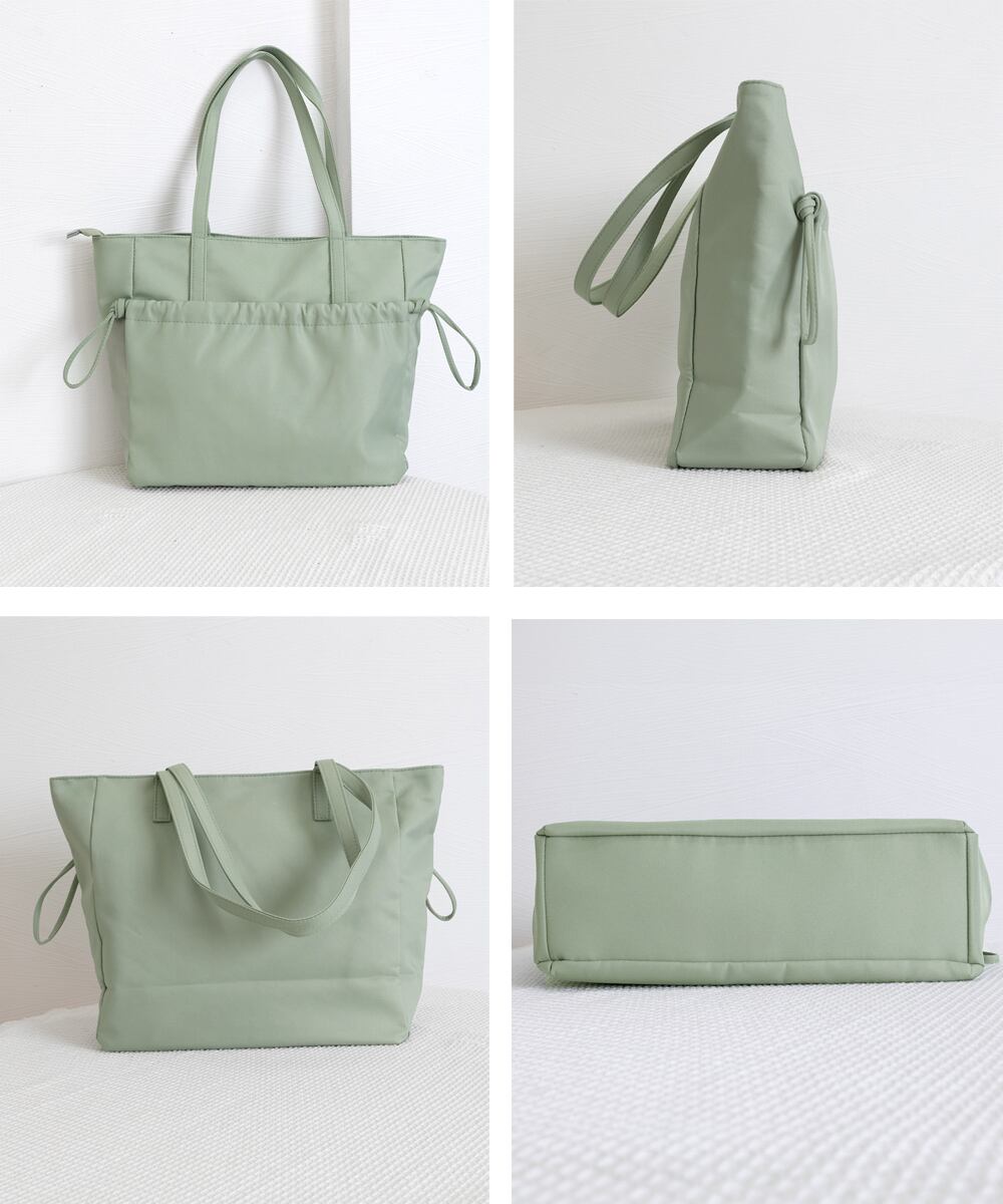 A4サイズがしっかり収まるメインルームは、普段使いはもちろん、荷物が多い日にも活躍。素材:ナイロン+ポリエステルカラー:ブラック/ベージュ/ミント/ラベンダー