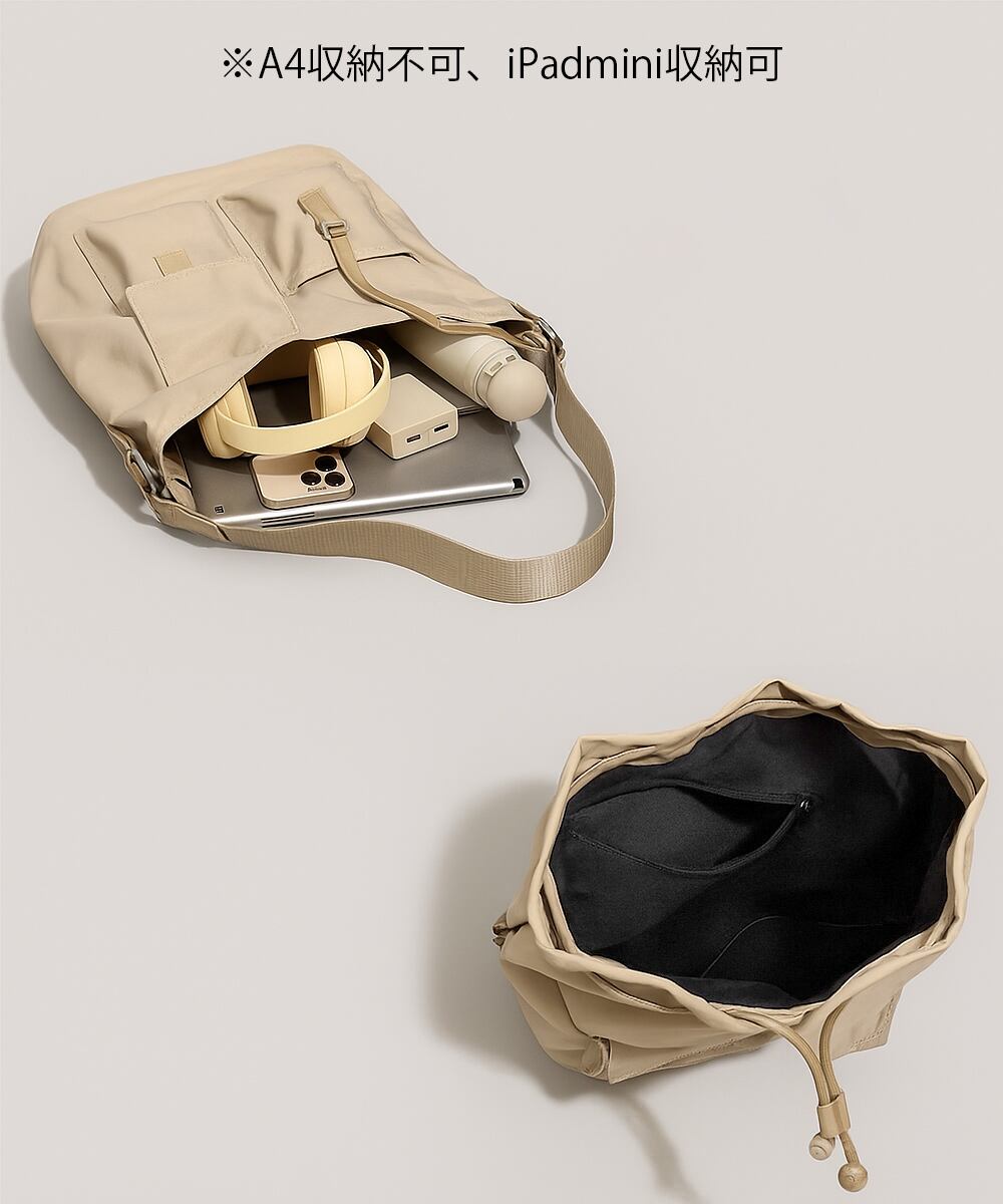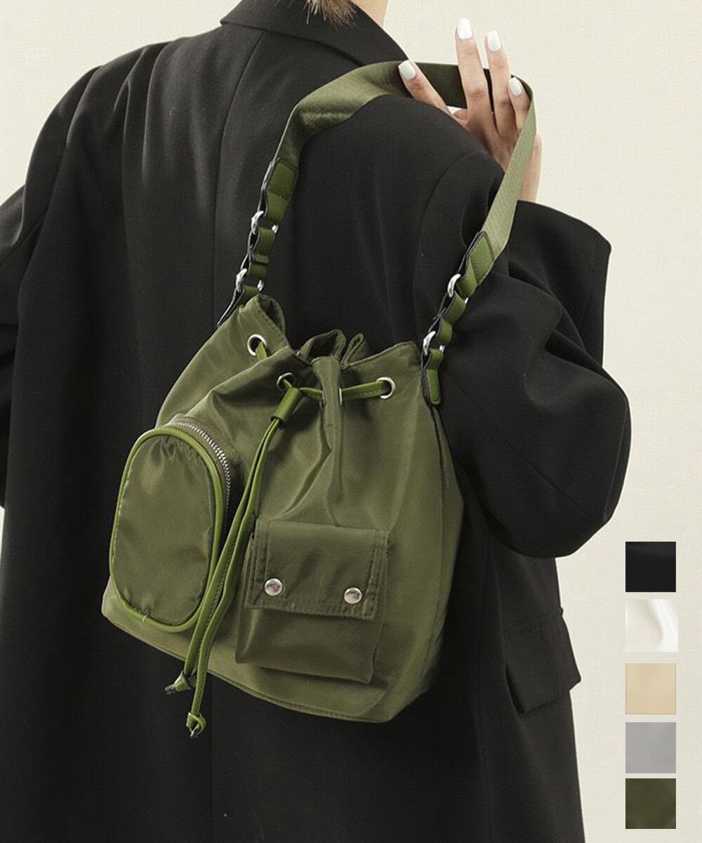 小物が収納しやすい外ポケット付きで、整理整頓も簡単素材:ナイロン+ポリエステルカラー:ブラック/アイボリー/ベージュ/グレー/カーキ