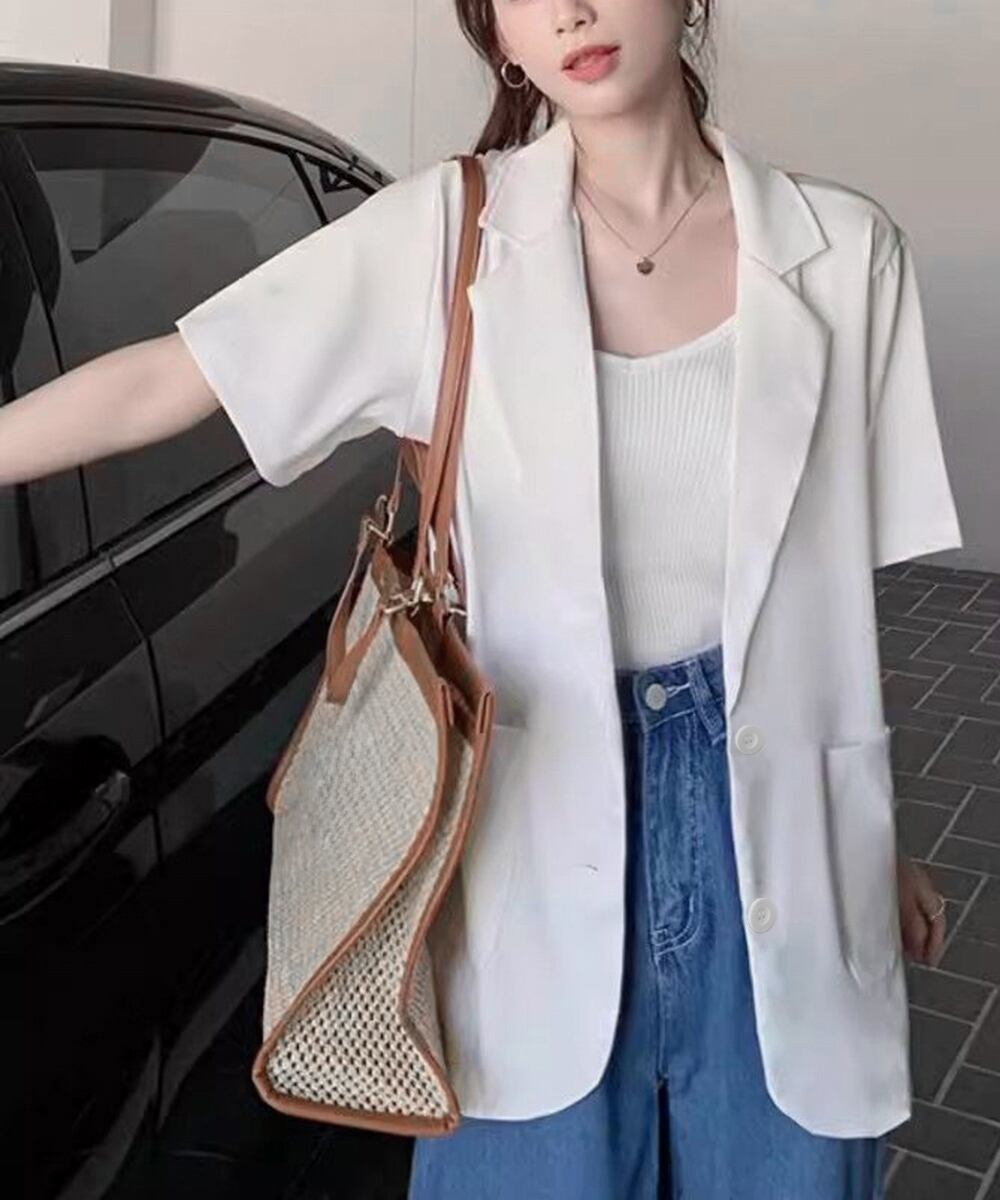 【日本倉庫即納】 半袖テーラードジャケット レディース夏服