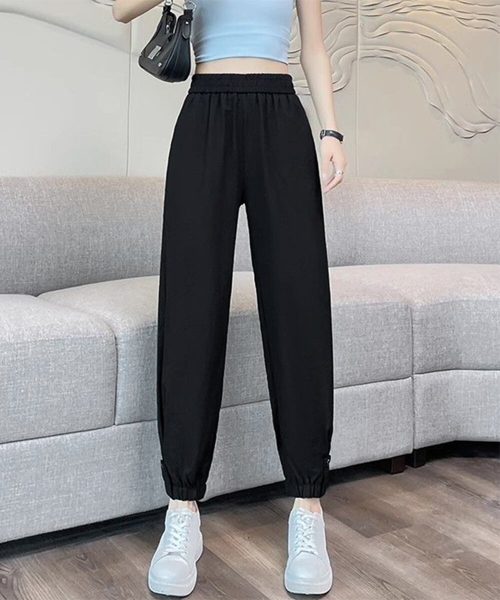 イージーパンツ 韓国風 無地 レディースボトムス 九分丈 ゆったり 薄手 ポケット付き 着回し 裾ゴムパンツ カジュアルヨガスポーツウェア ルームウェア部屋着 春夏らくちんパンツウエストは総ゴム仕様で、ストレスフリーなはき心地が魅力のイージーパンツ