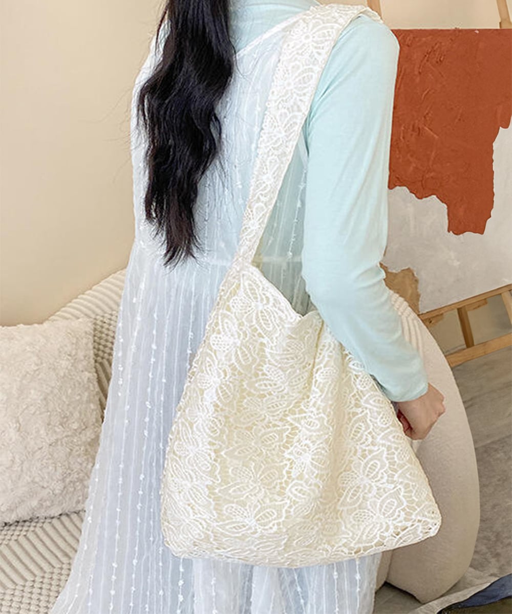 【日本倉庫即納】 トートバッグ 大容量 レースバッグ 花柄
