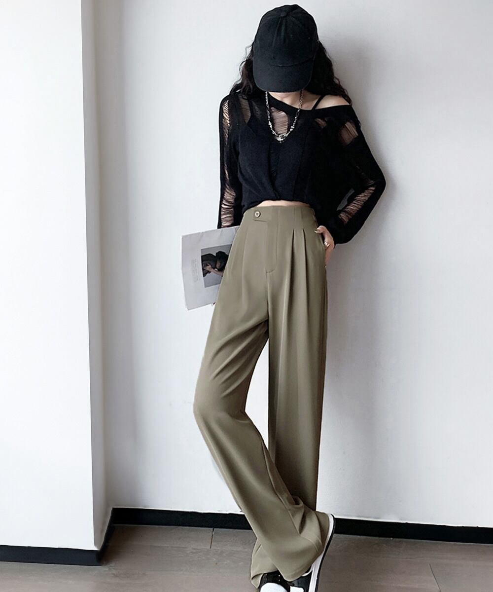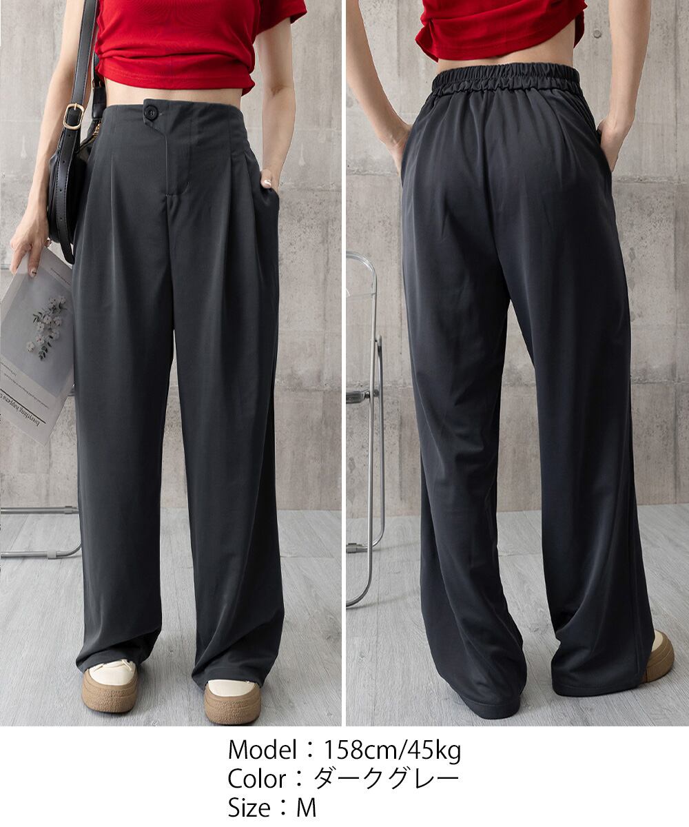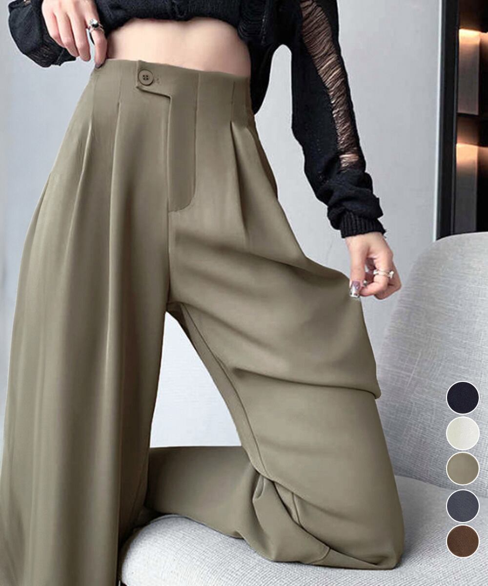 【日本倉庫即納】 ハイウエストスラックス セミワイドパンツ