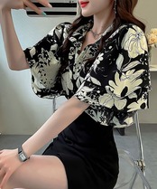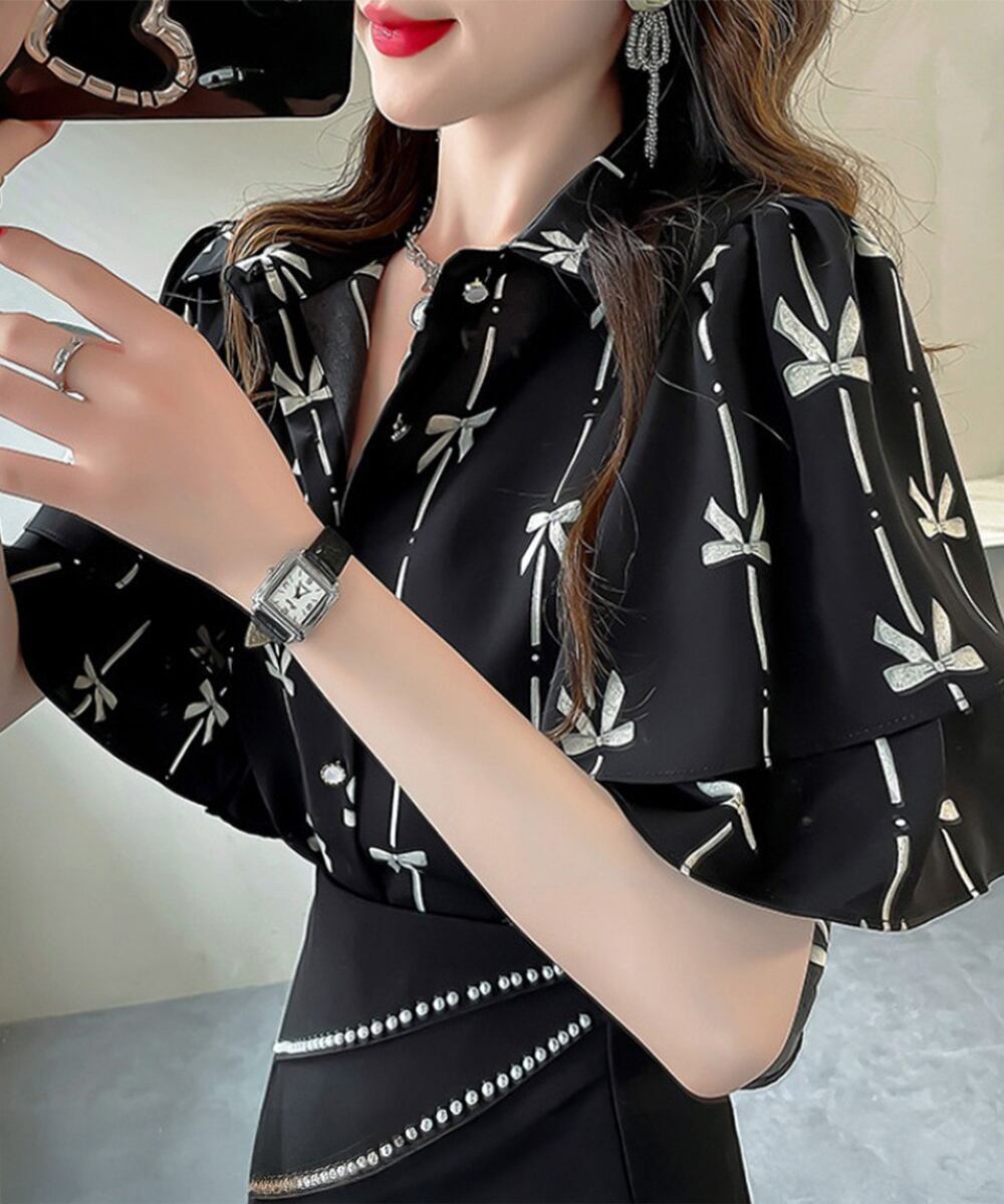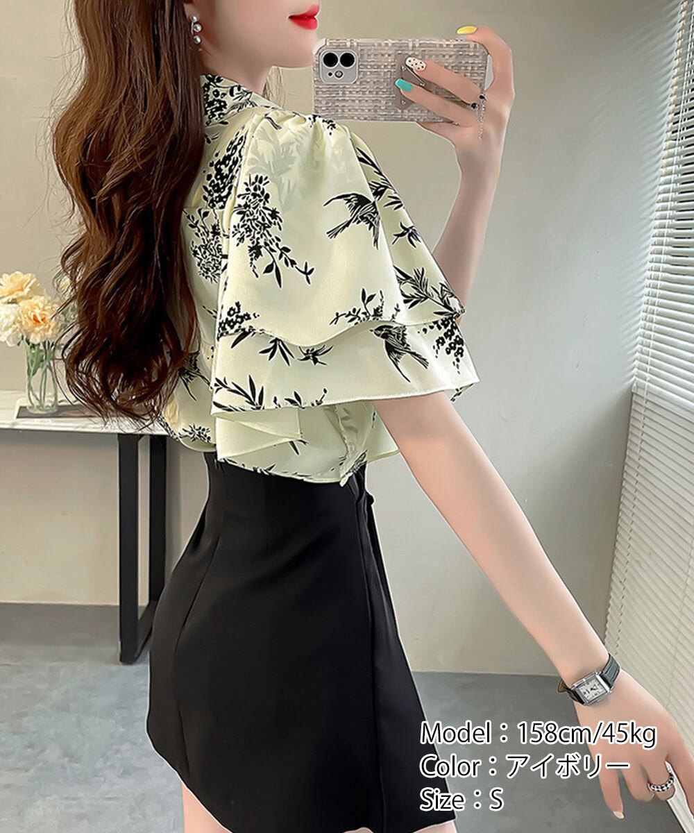 【日本倉庫即納】 総柄ブラウスダブルフレアスリーブトップス