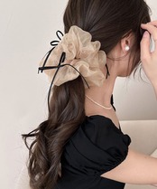 レディース ヘアアレンジ 髪飾り リボン お団子 フェミニン オルチャン 大人 可愛い おしゃれ 女子会 パーティーヘアアクセサリー 雑貨 まとめ髪 卒業式 入学式小物やわらかなシフォン素材に、細リボンのアクセントが可愛いボリュームシュシュ