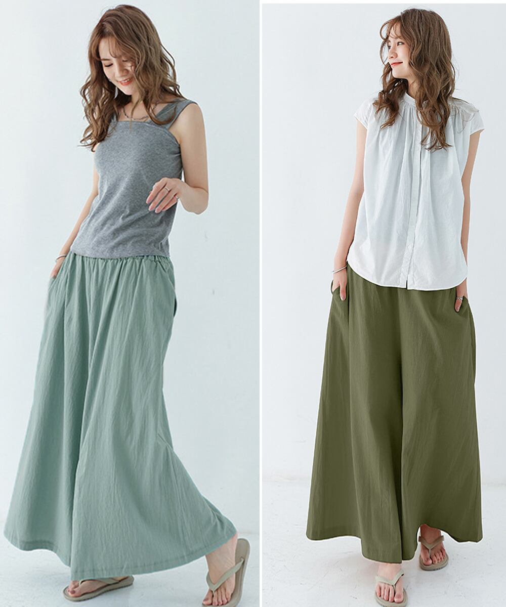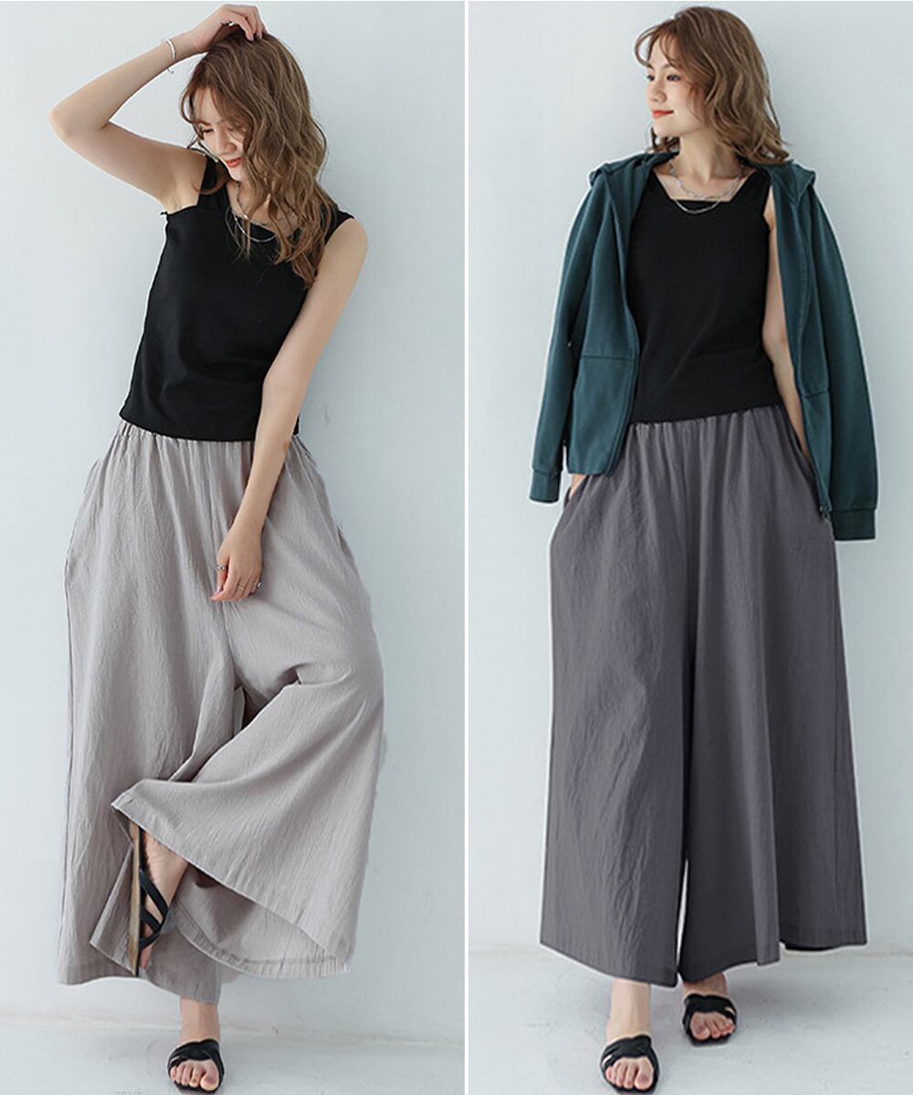 【日本倉庫即納】 リラックスワイドパンツ キュロットパンツ